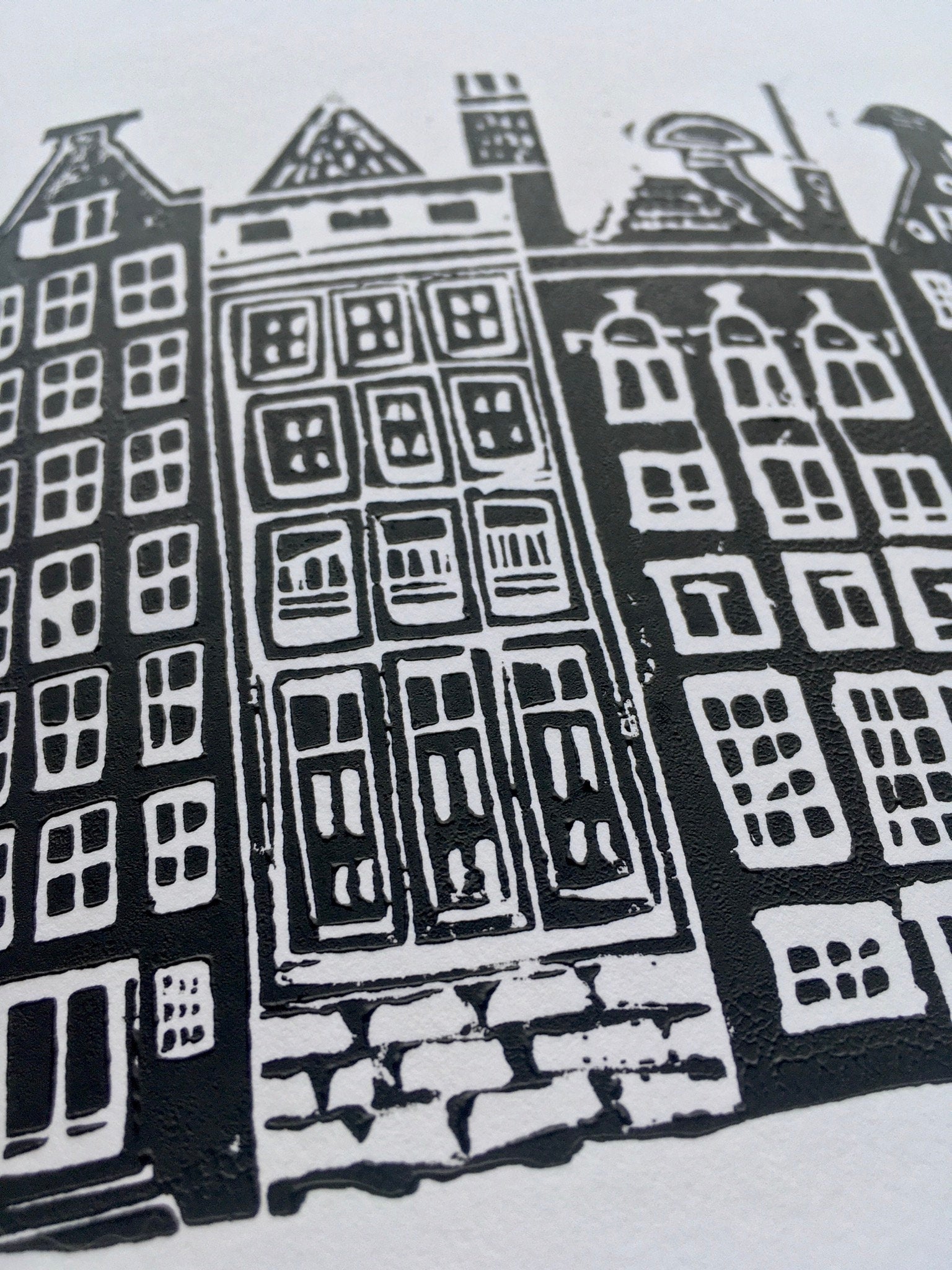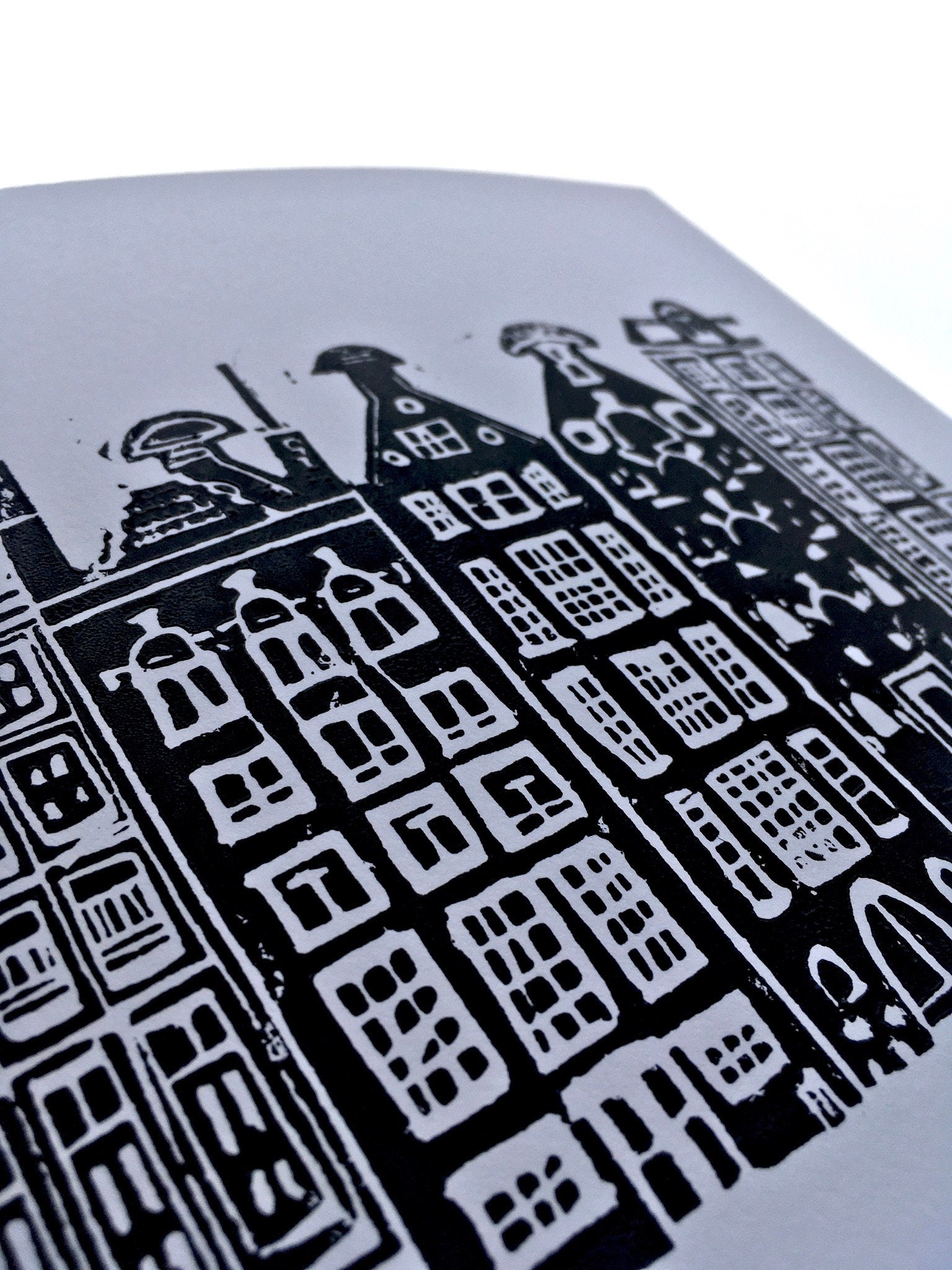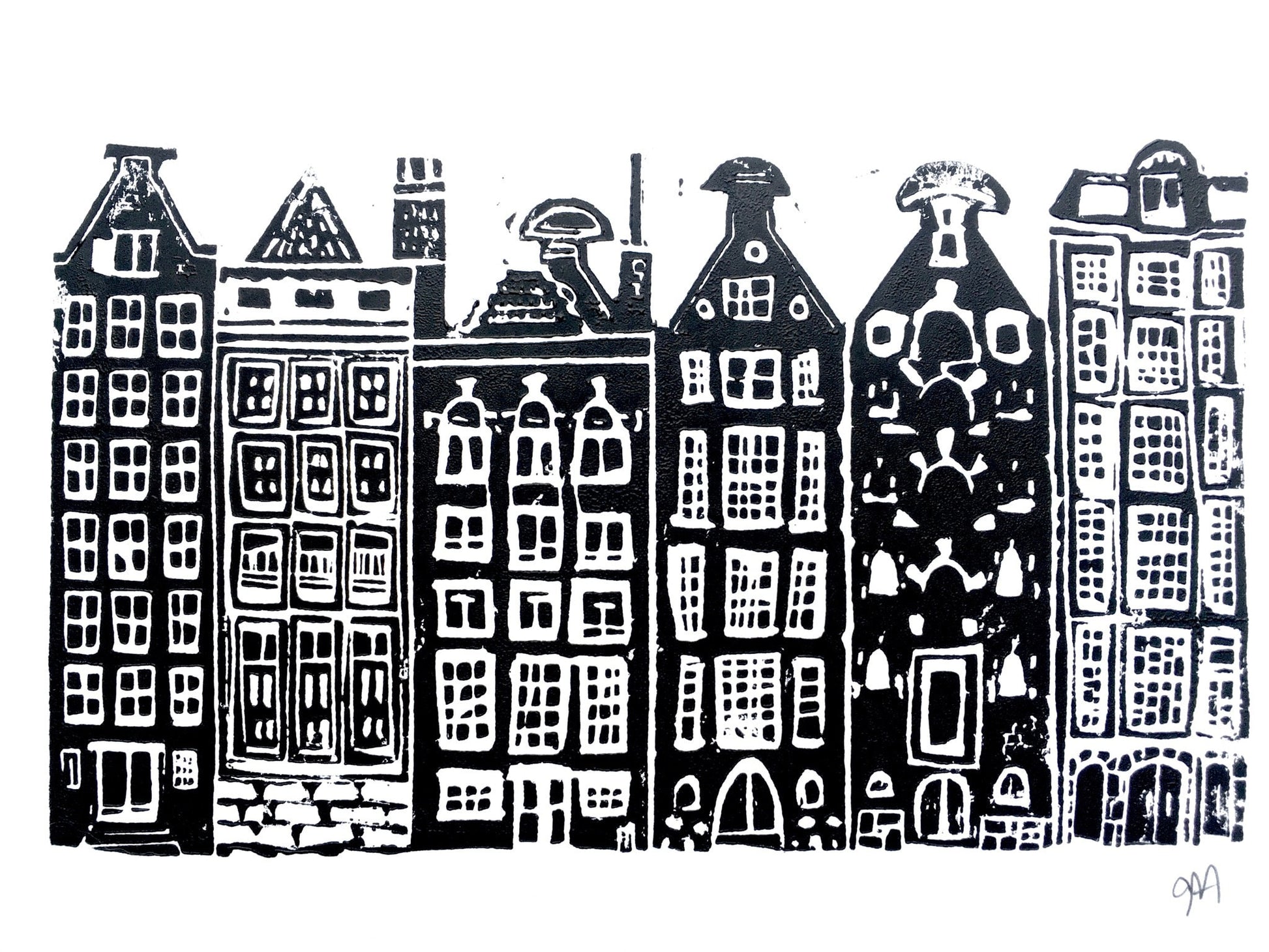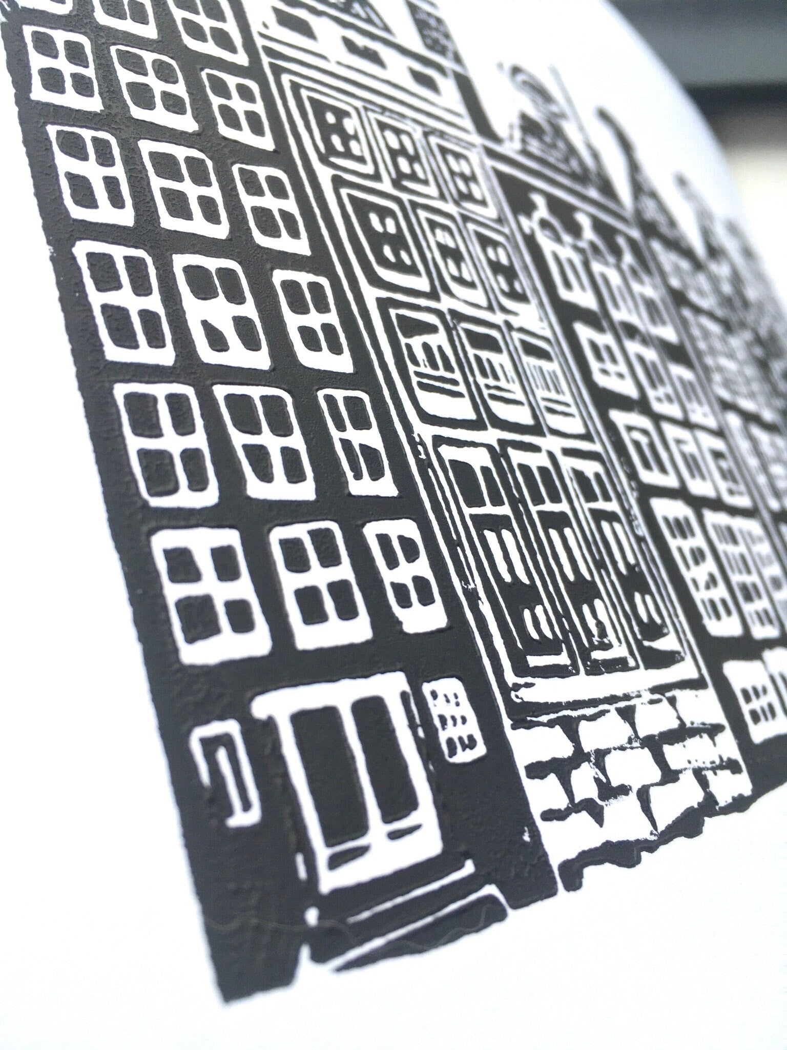Amsterdam Canal Houses - Linocut print (8x10in)