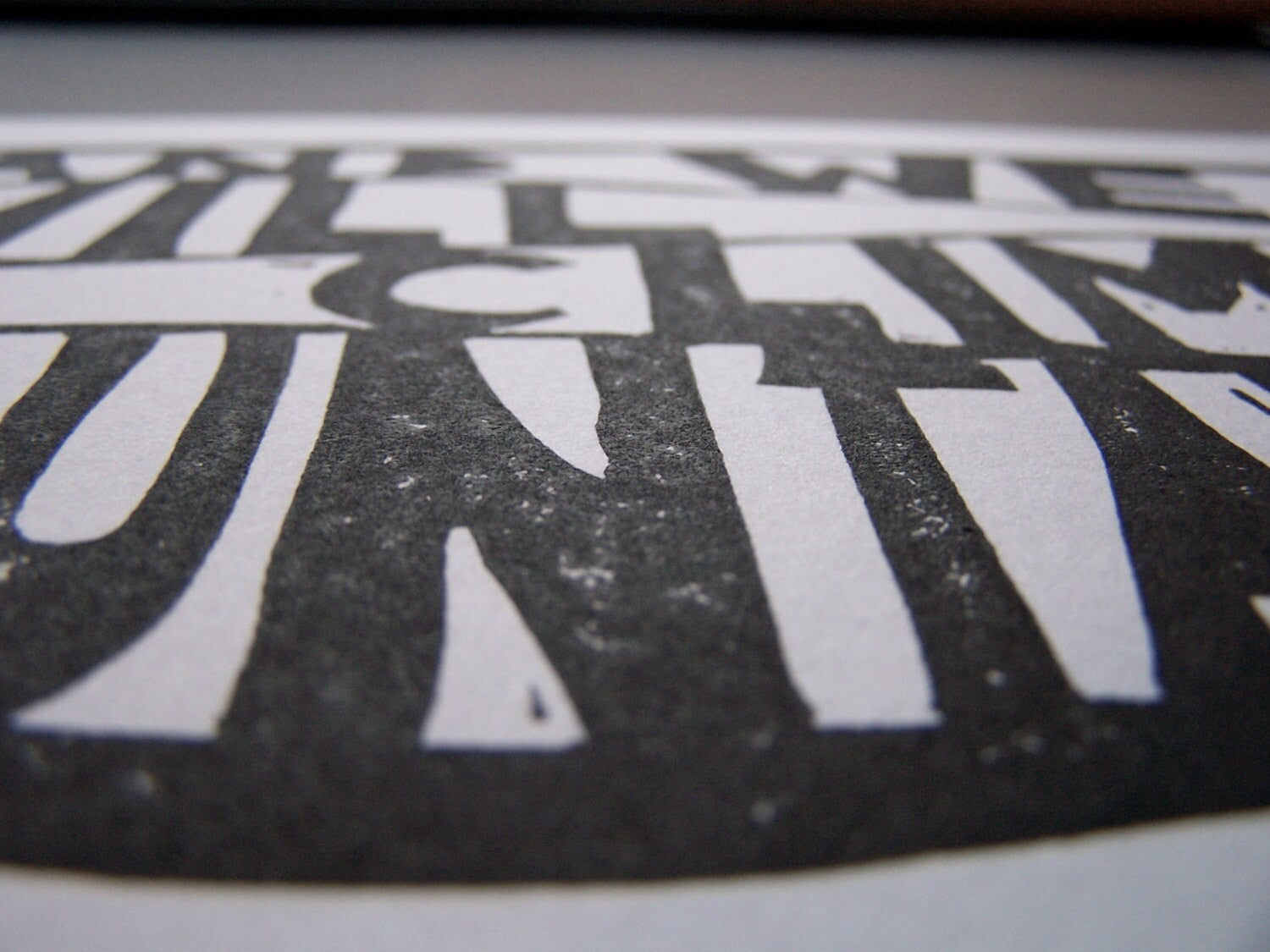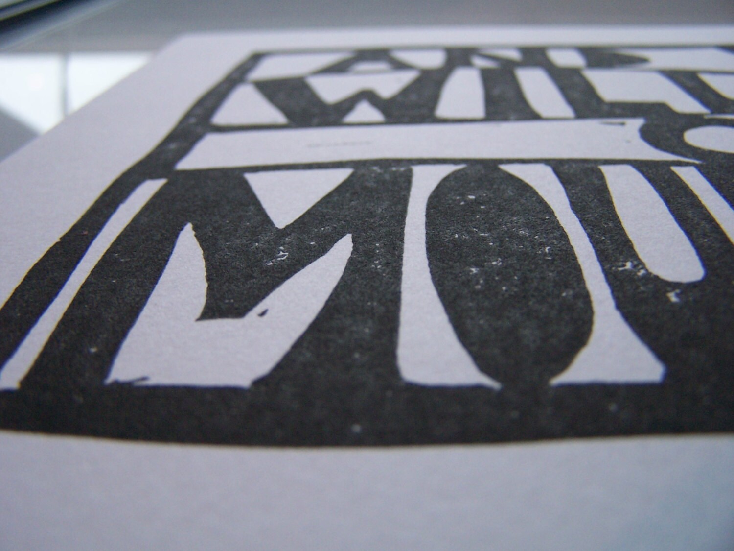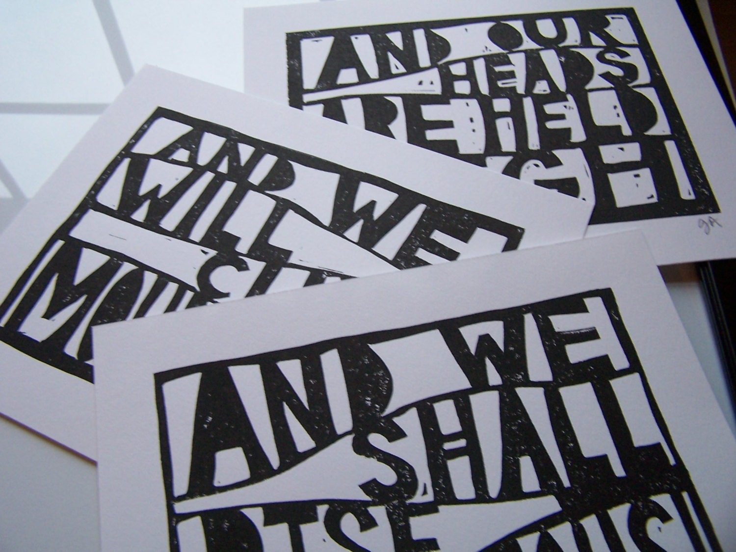 This hand-pulled linoleum block print was pressed in black on letterpress paper from a hand-carved block. Due to the printmaking process, no two are completely alike. This is a set of three.