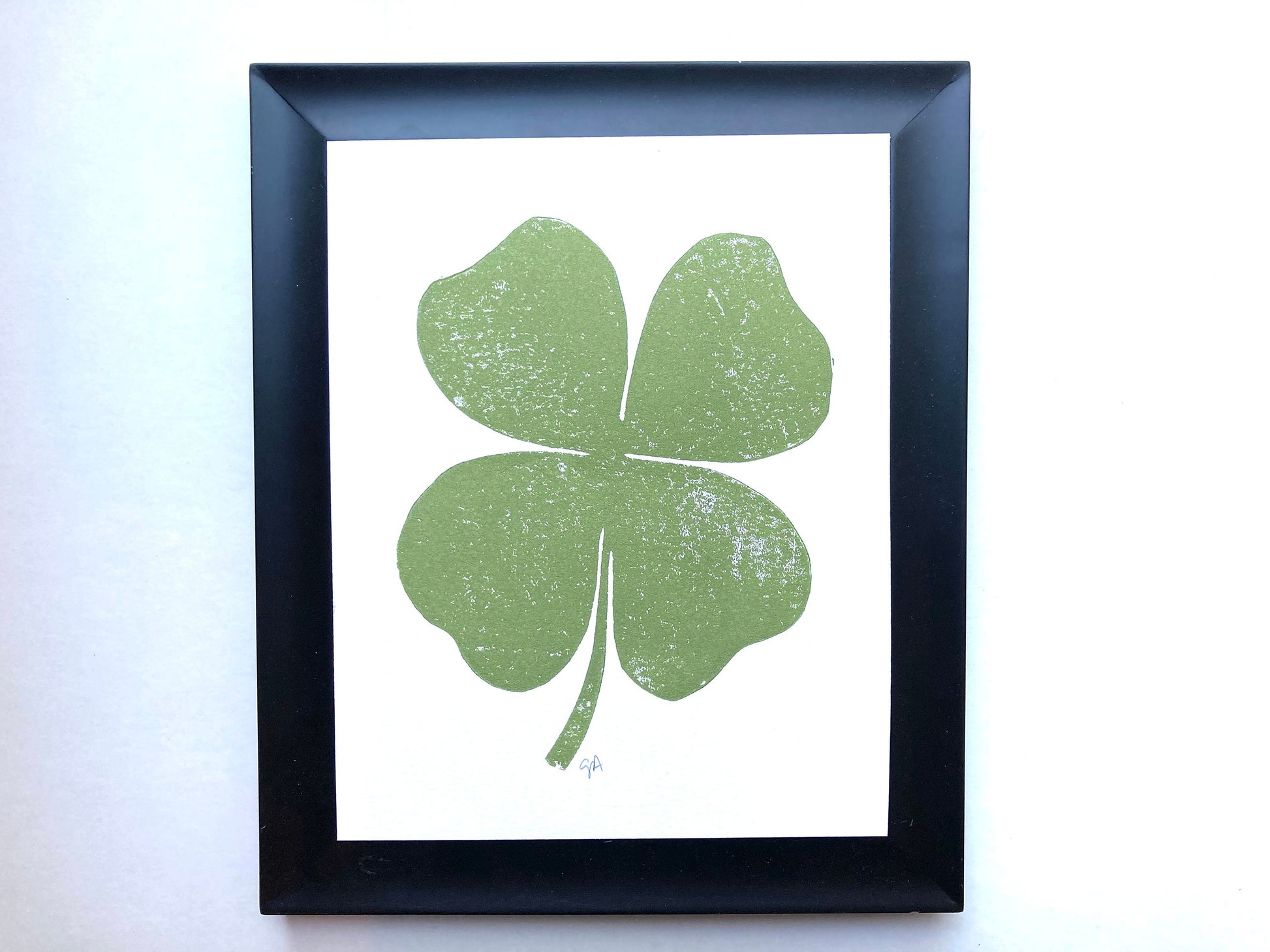 LINOCUT - Four leaf clover - Hand-pressed linoleum block print (8x10in)