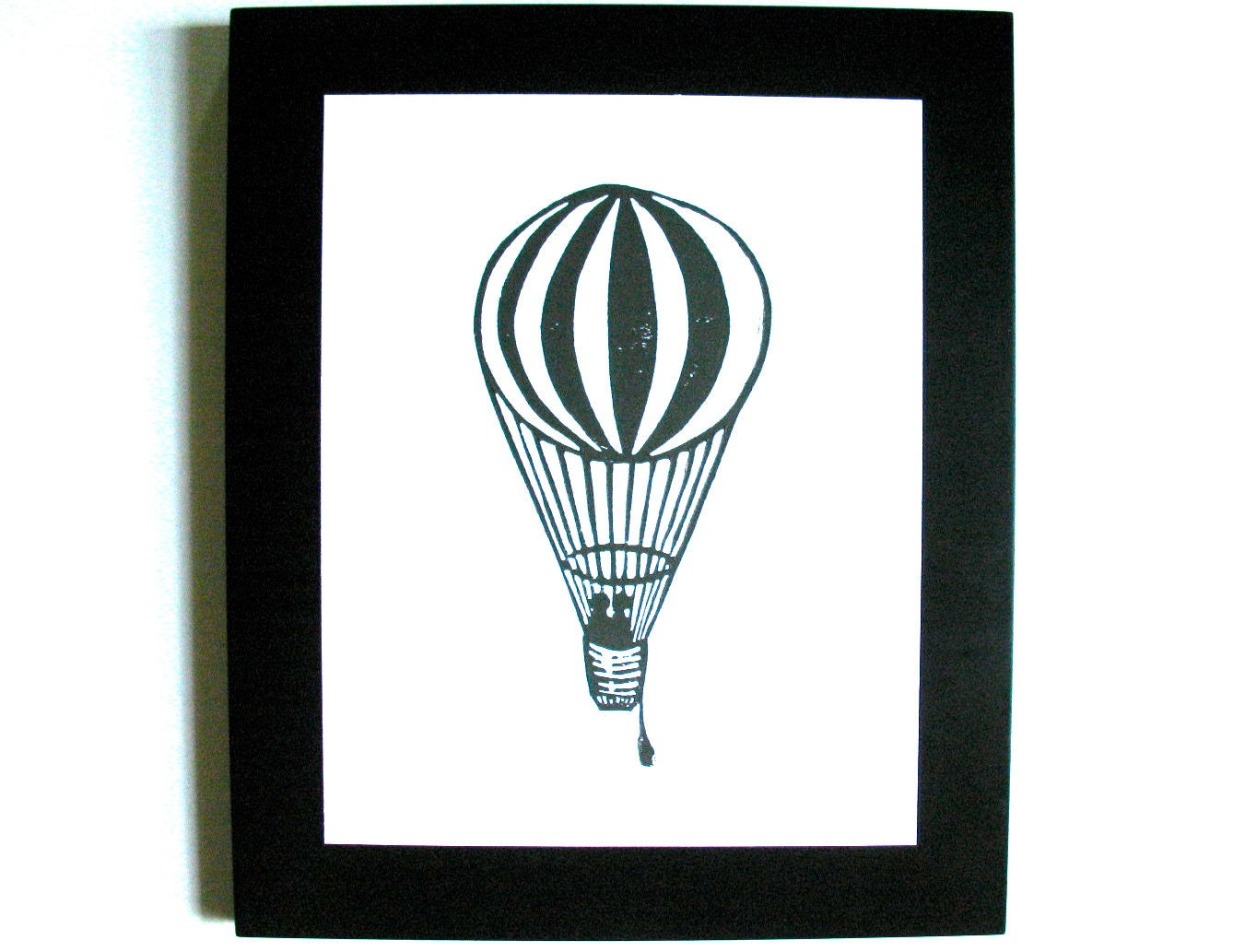 Hot air balloon linocut print - Black 8x10 linoleum print on cotton paper -