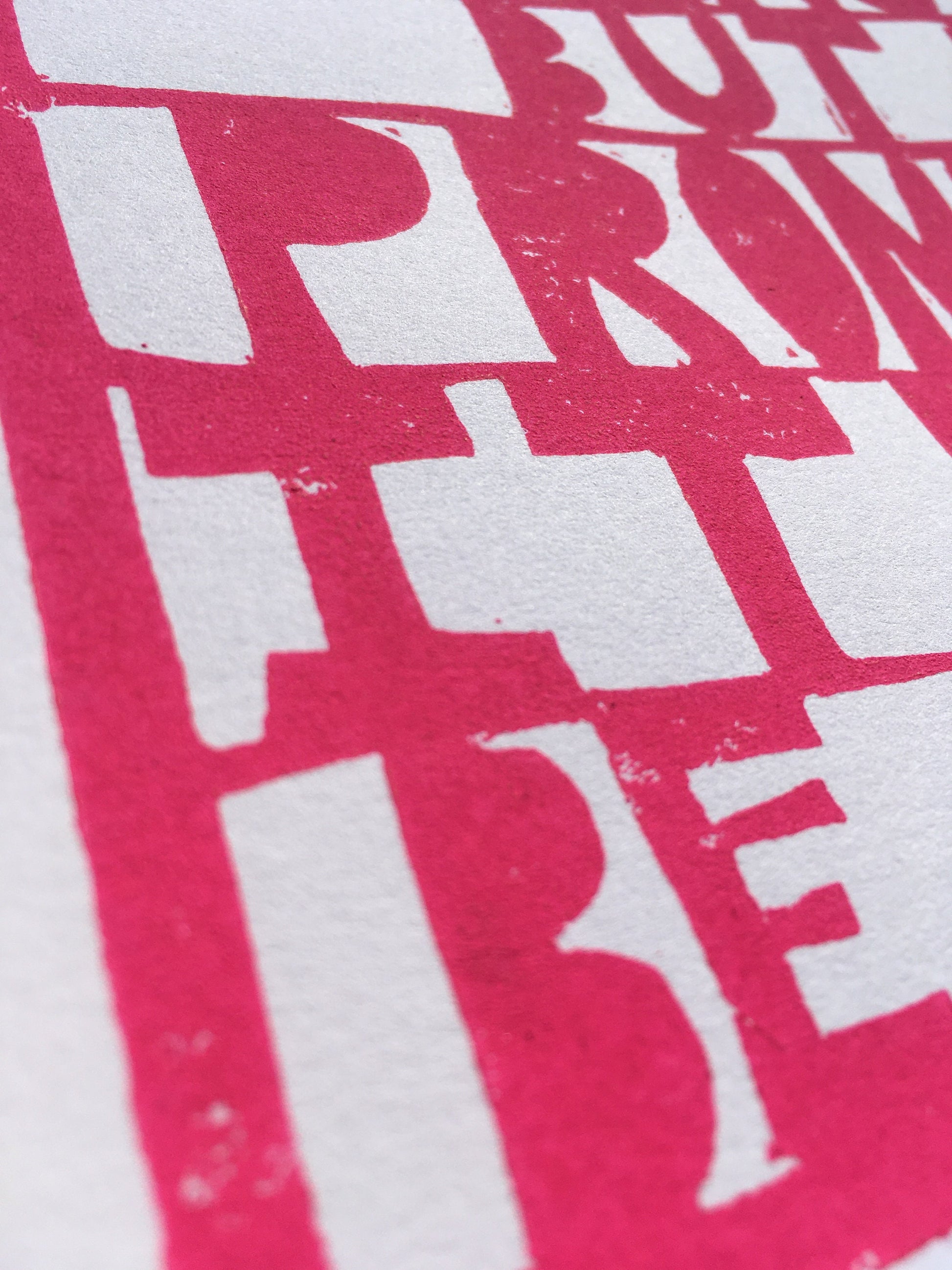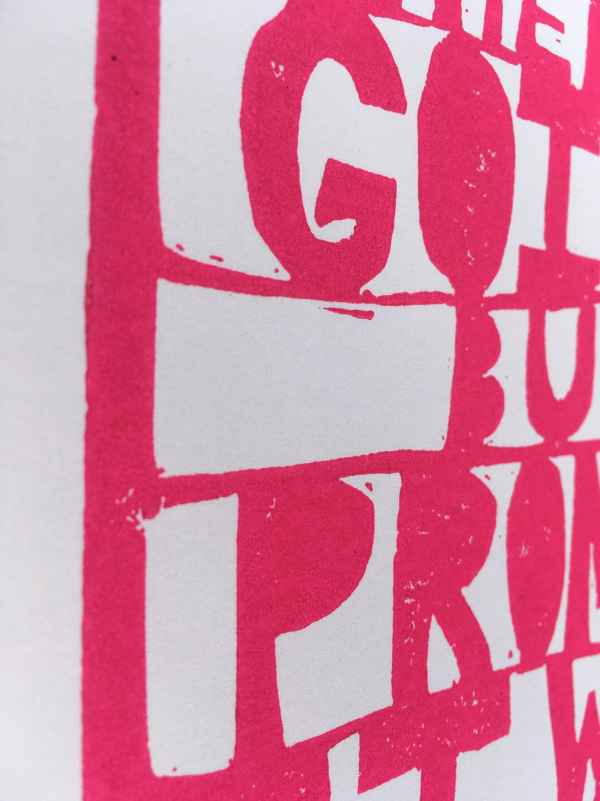 This hand-pulled linoleum block print was pressed in hot pink on gorgeous letterpress paper. The linoleum block is carved by hand, inked, then each linoprint is pressed individually. Due to the printmaking process (which is done entirely by hand), there will be variations from print to print. All materials are permanent and archival.