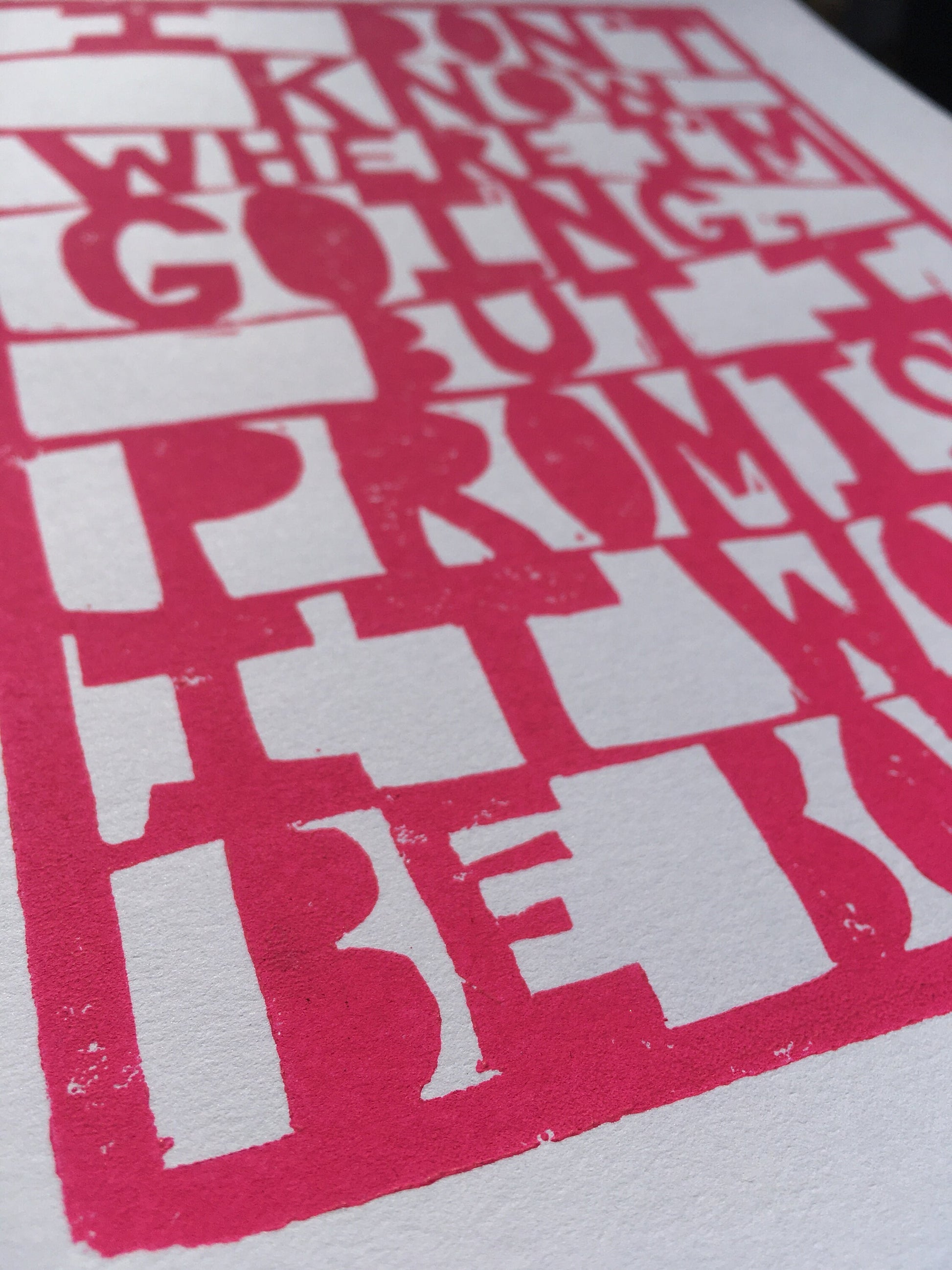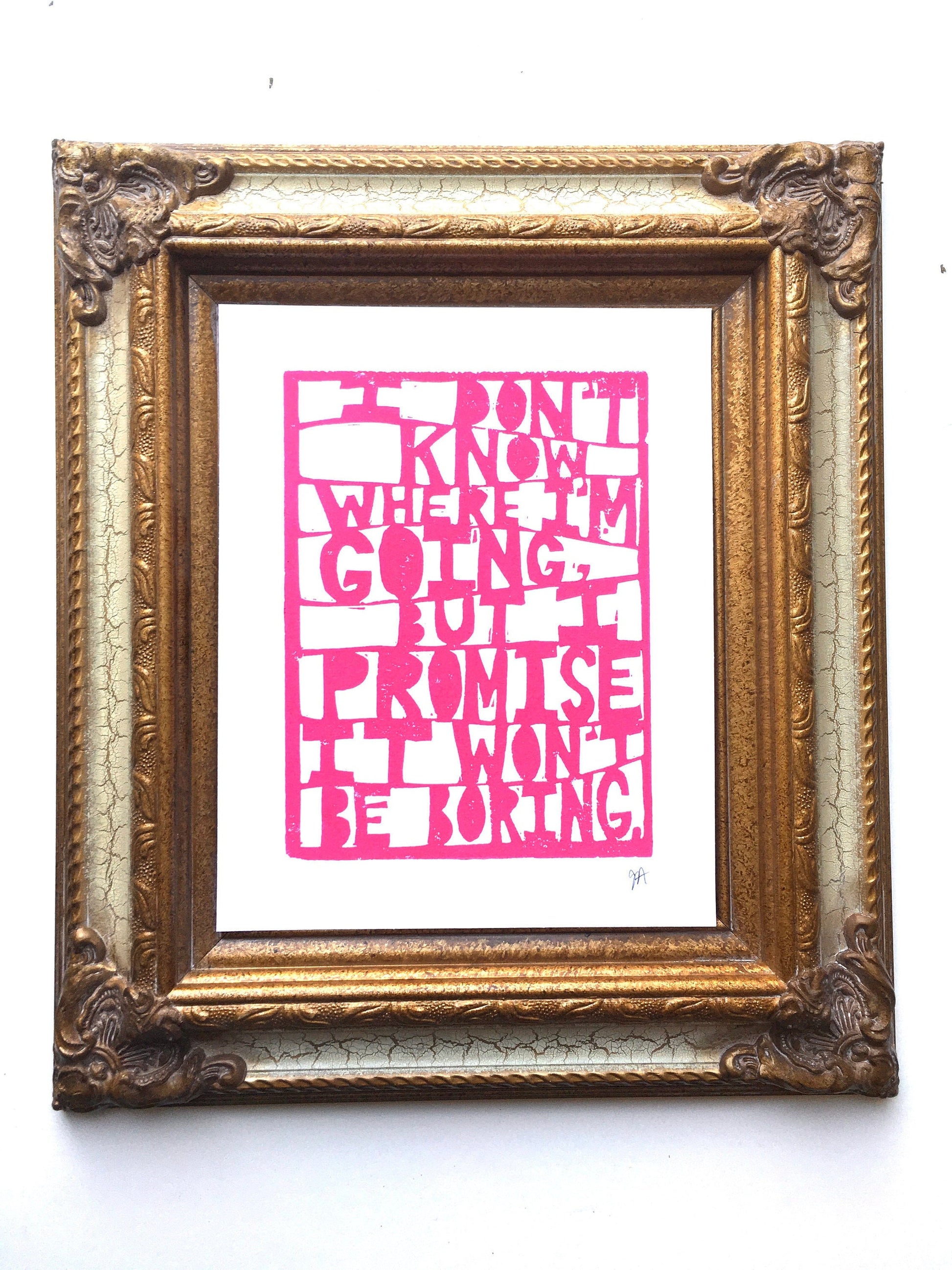 Hot pink 8x10 linocut print I don't know where I'm going but it won't be boring - David Bowie.