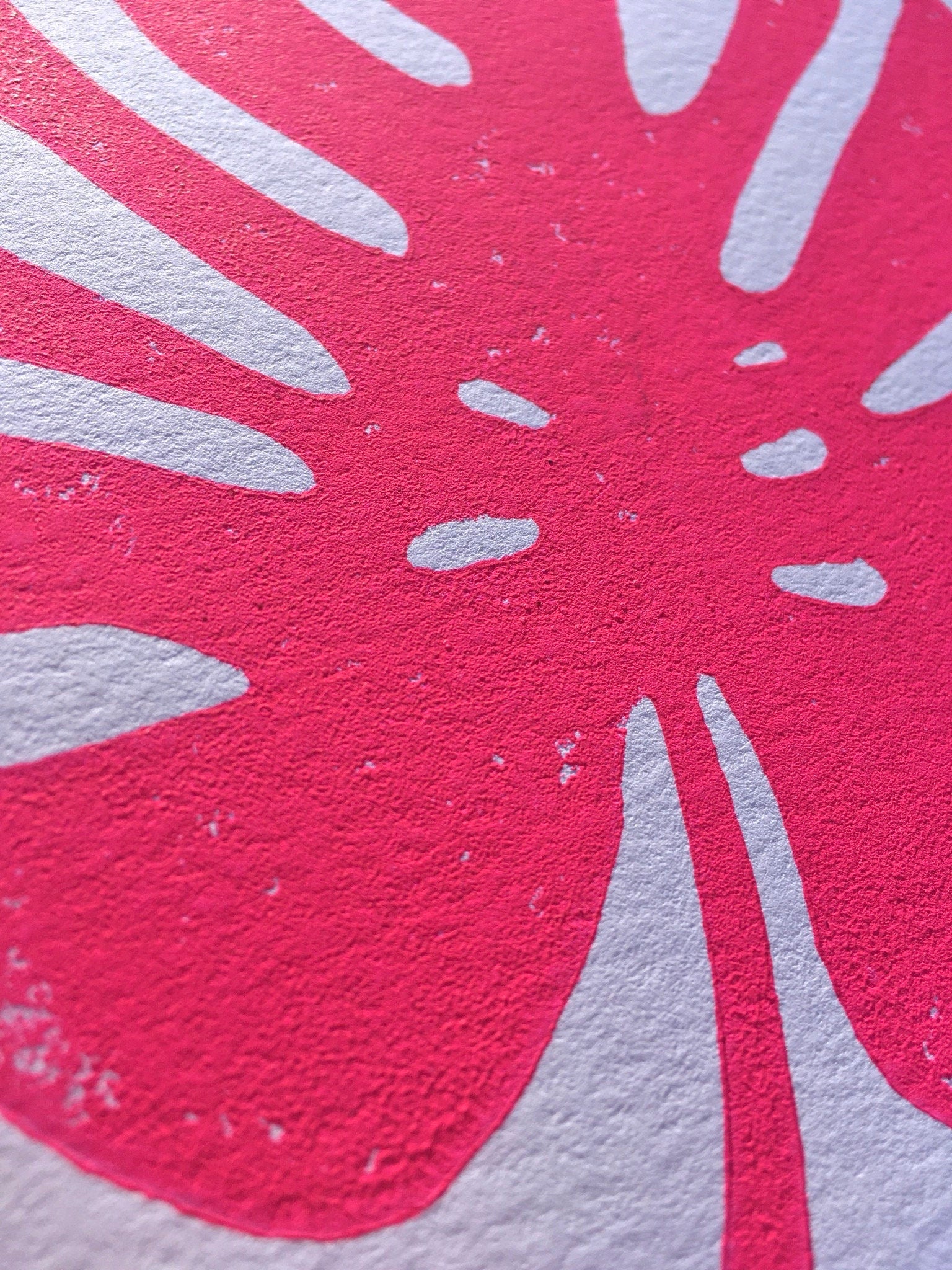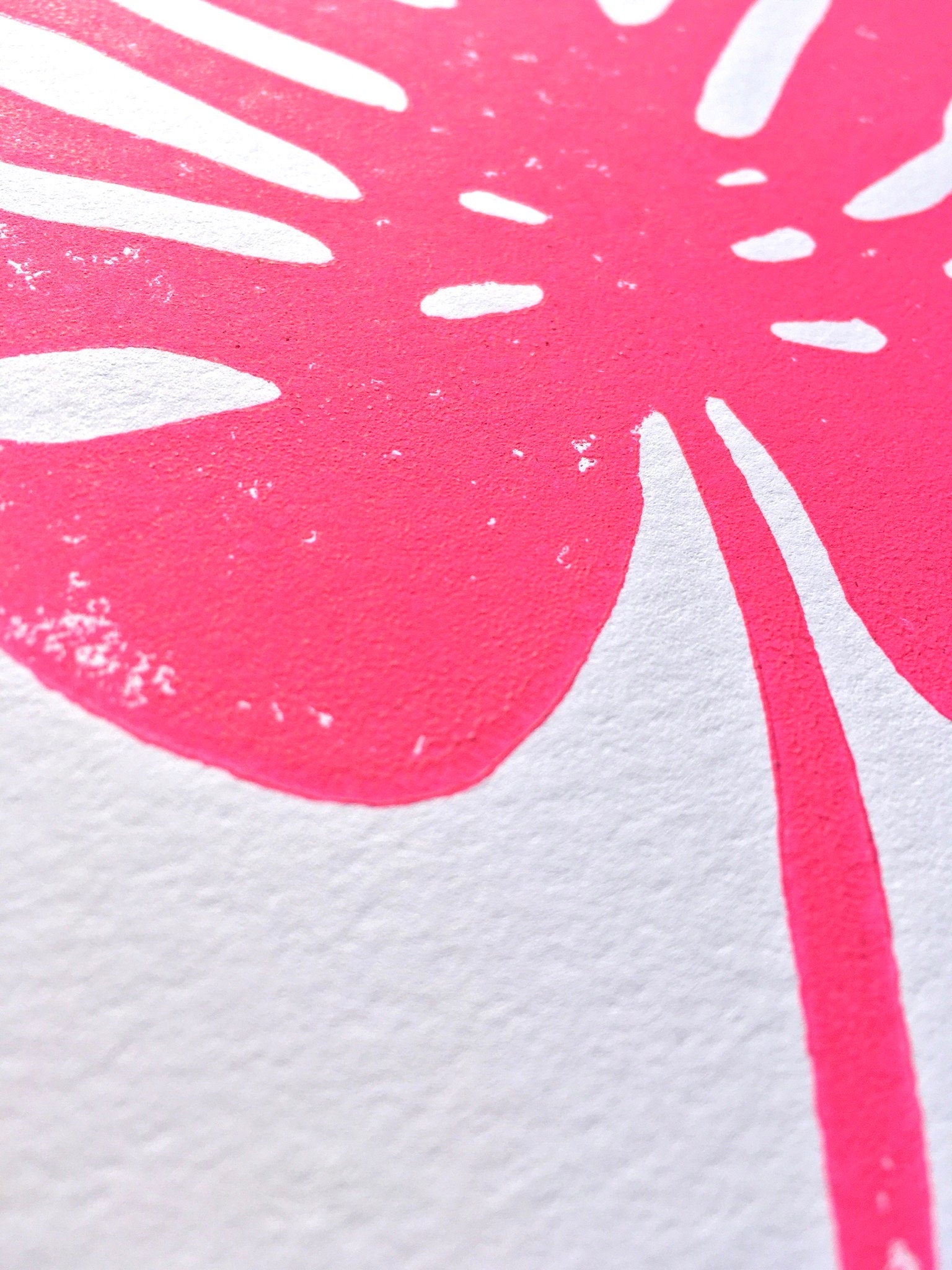 This open-edition, hand-pulled beach print was printed in hot pink on thick cotton Lettra letterpress paper. The linoleum block is carved by hand, inked, then printed individually. Due to the printing process (which is done entirely by hand), there will be variations from print to print giving you an original and unique piece of artwork! All materials are archival.