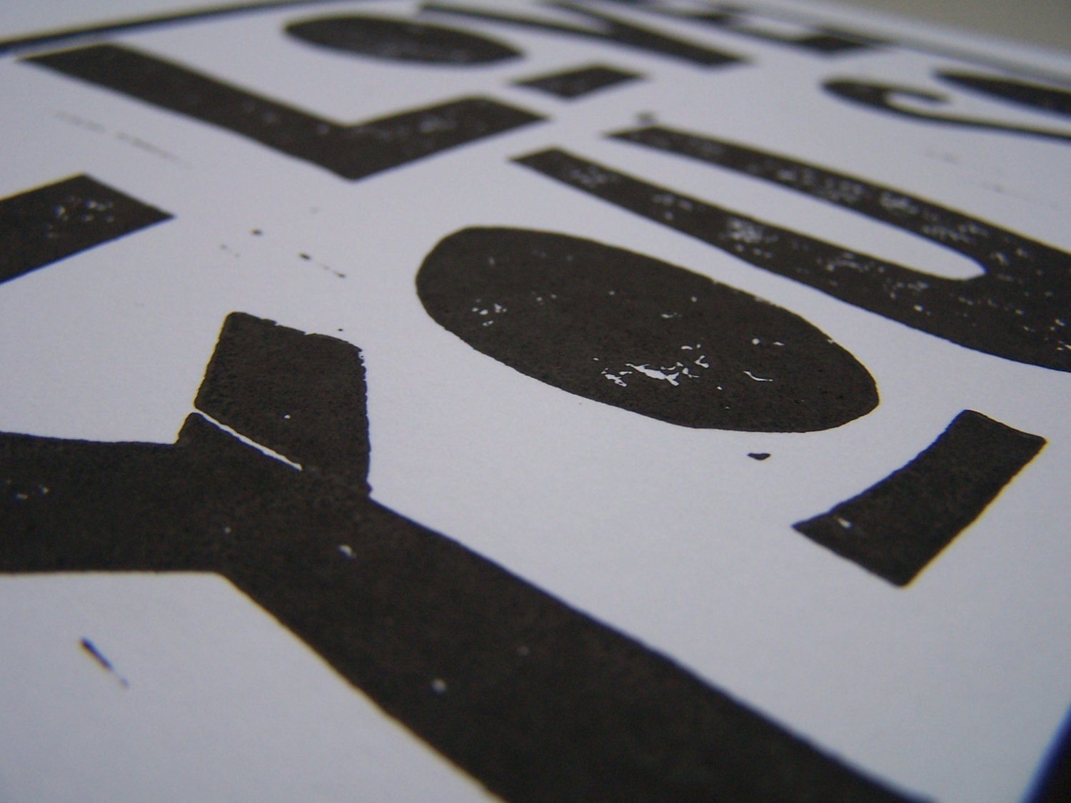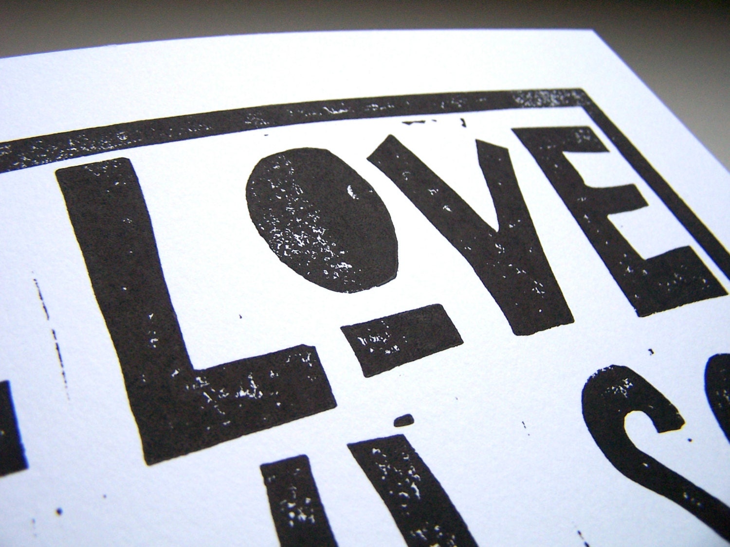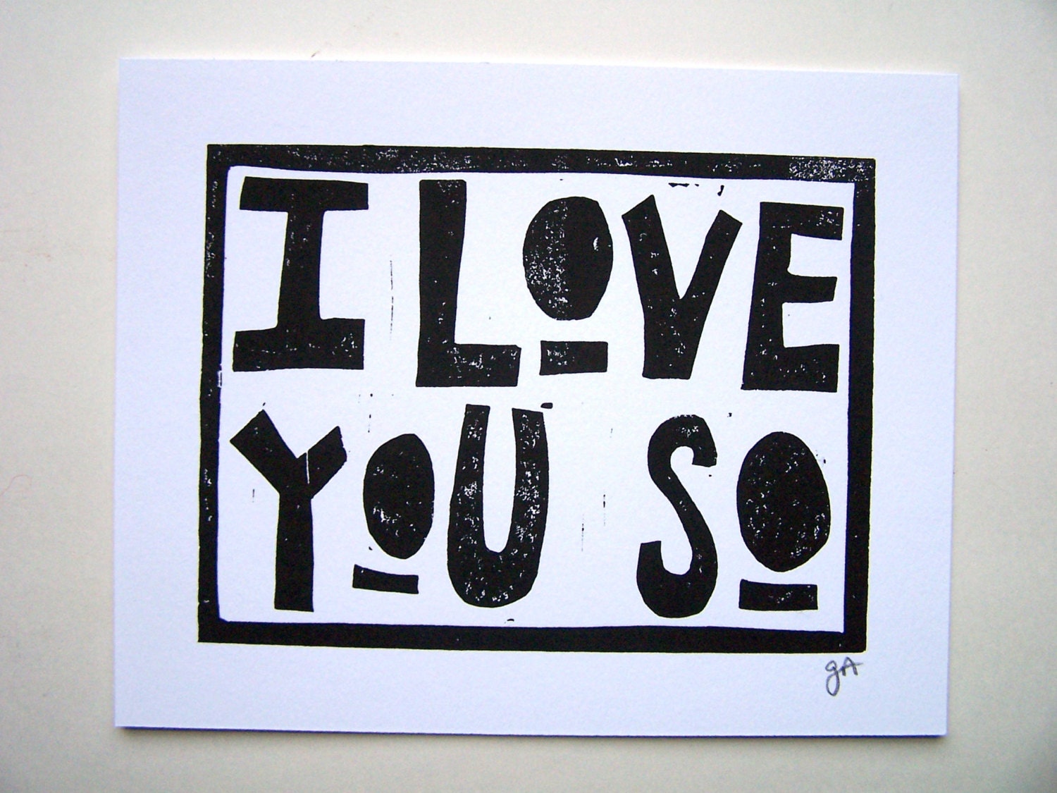 I LOVE YOU SO - hand pressed linoleum block print in black (8x10).