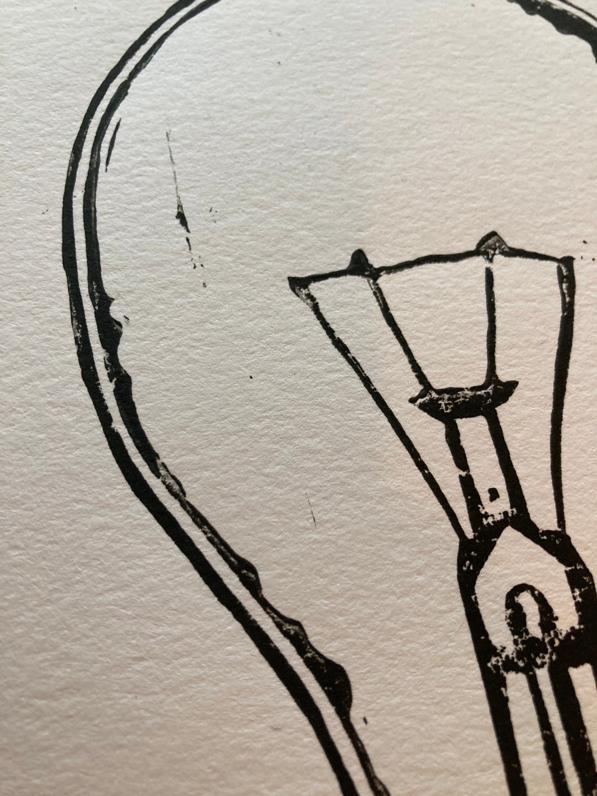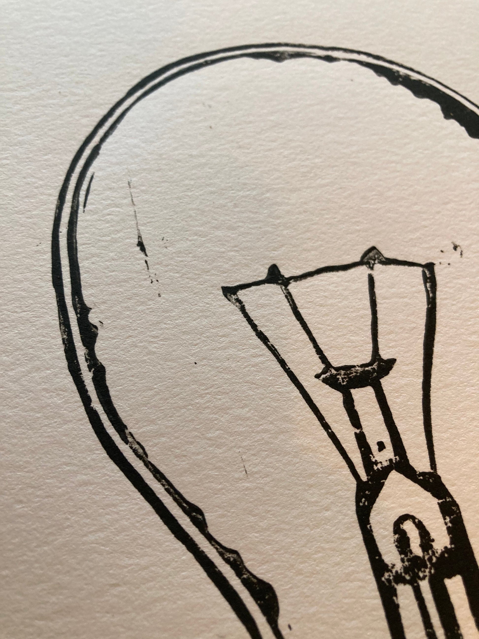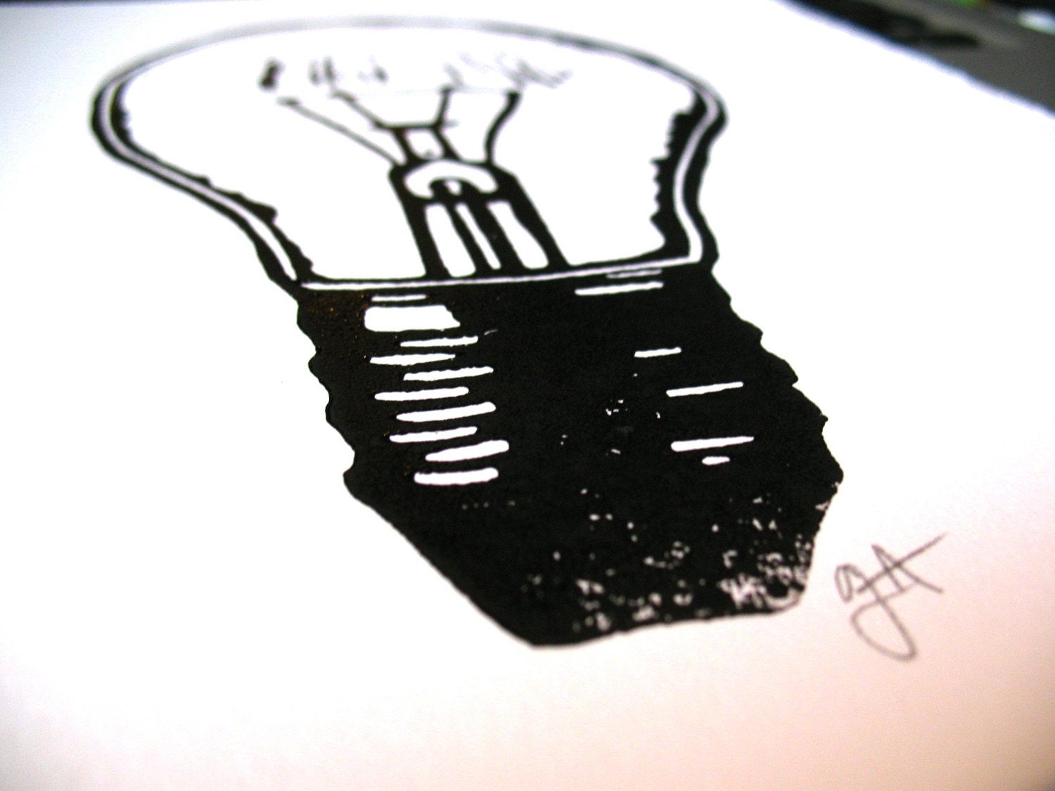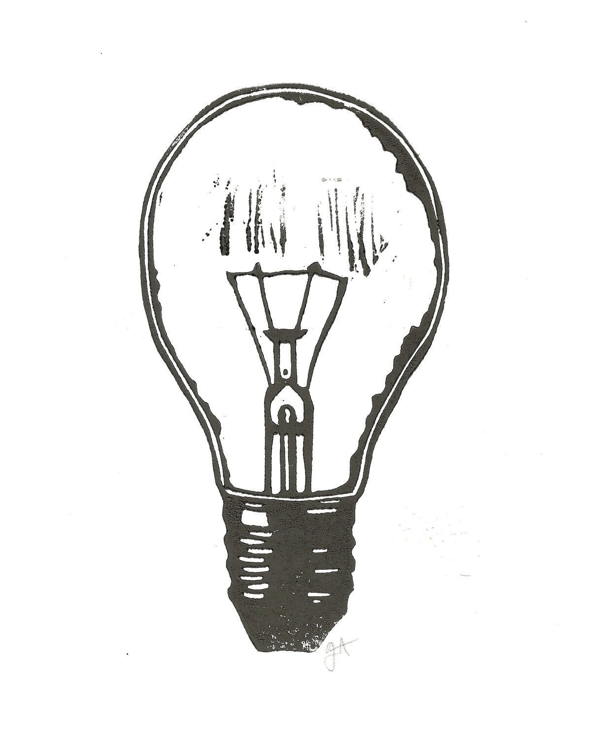 Lightbulb linocut relief print - Linoleum block poster - Hand pulled linoprint - Letterpress 8x10 - Inspirational wall art - printmaking