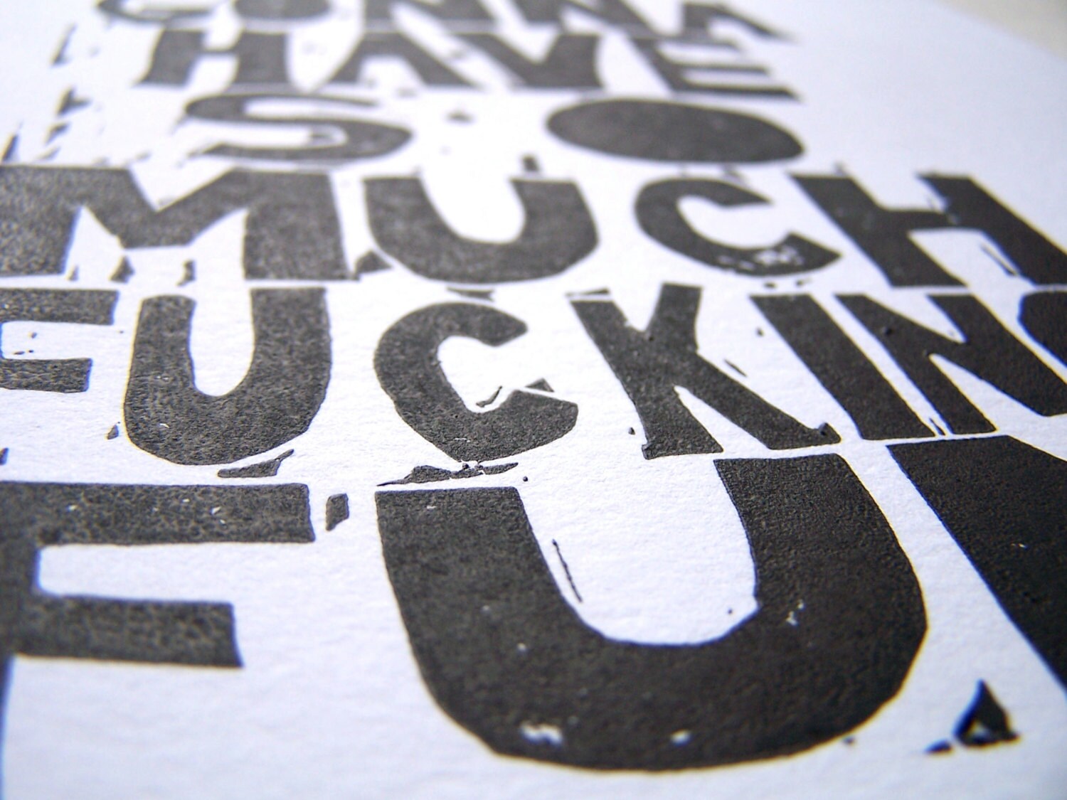 This original, hand-pulled typography print was pressed in black on beautifully thick cotton letterpress paper. The linoleum block is cut by hand, inked, then printed individually. Due to the printing process (which is done entirely by hand), there will be variations from print to print. All materials are archival.