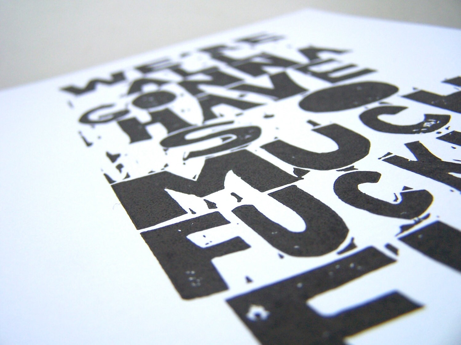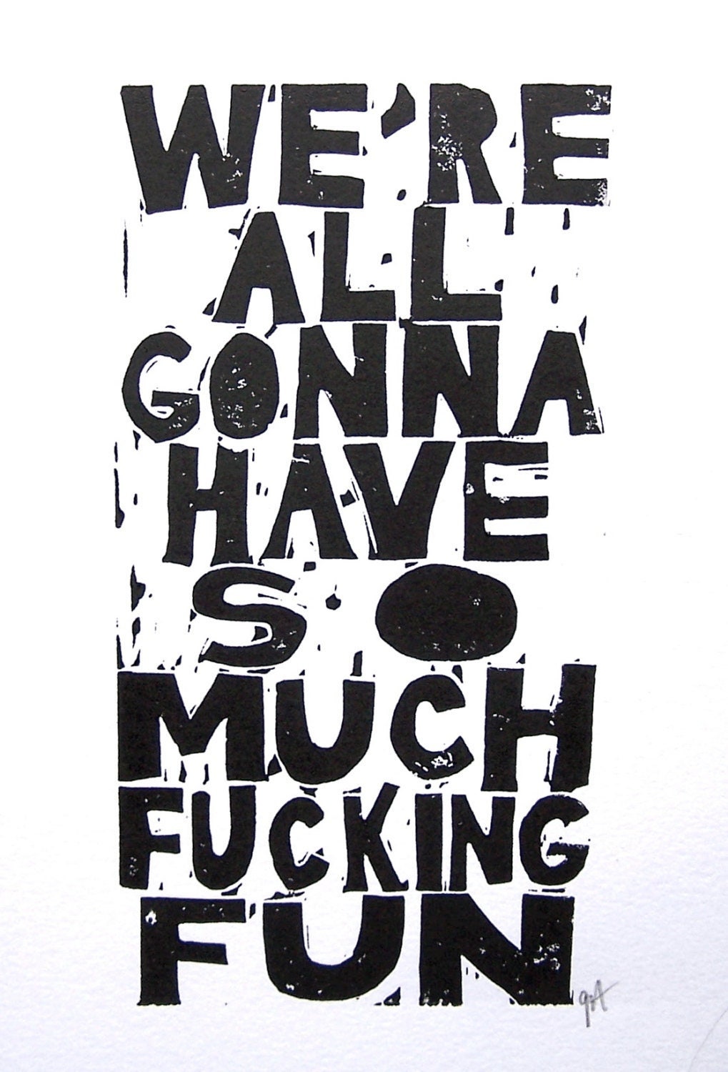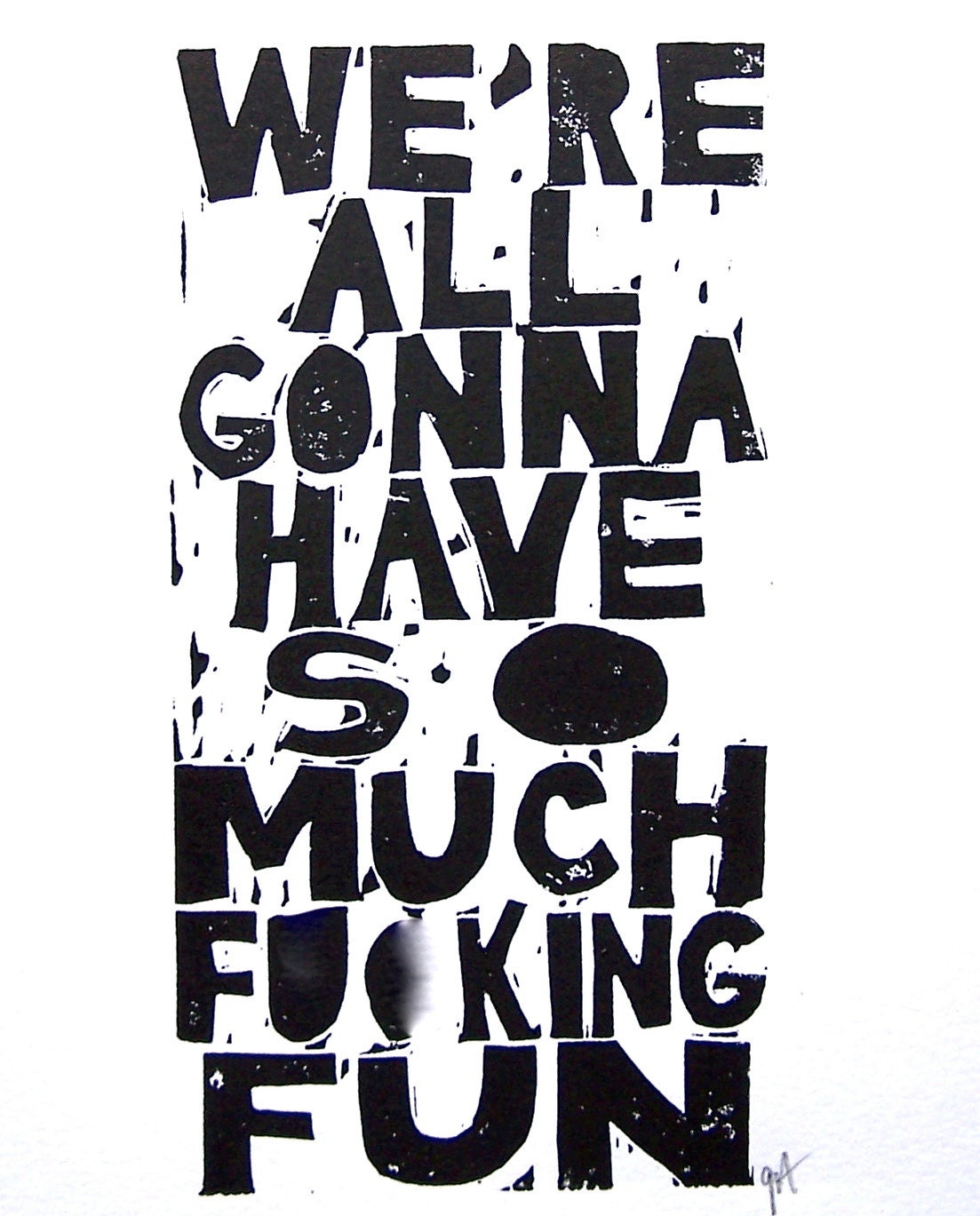 We're all gonna have so much fucking fun - Linocut print (8x10in)