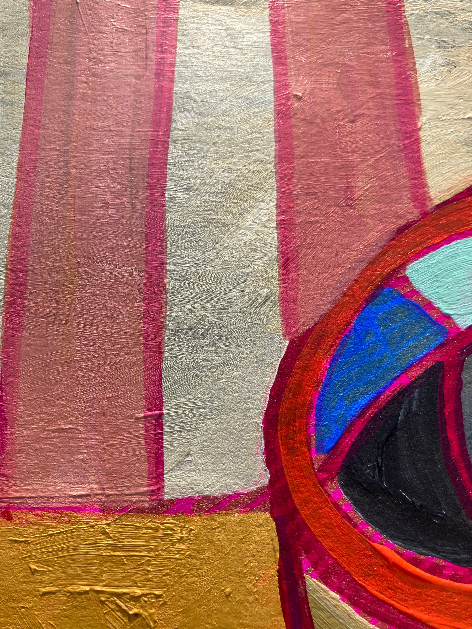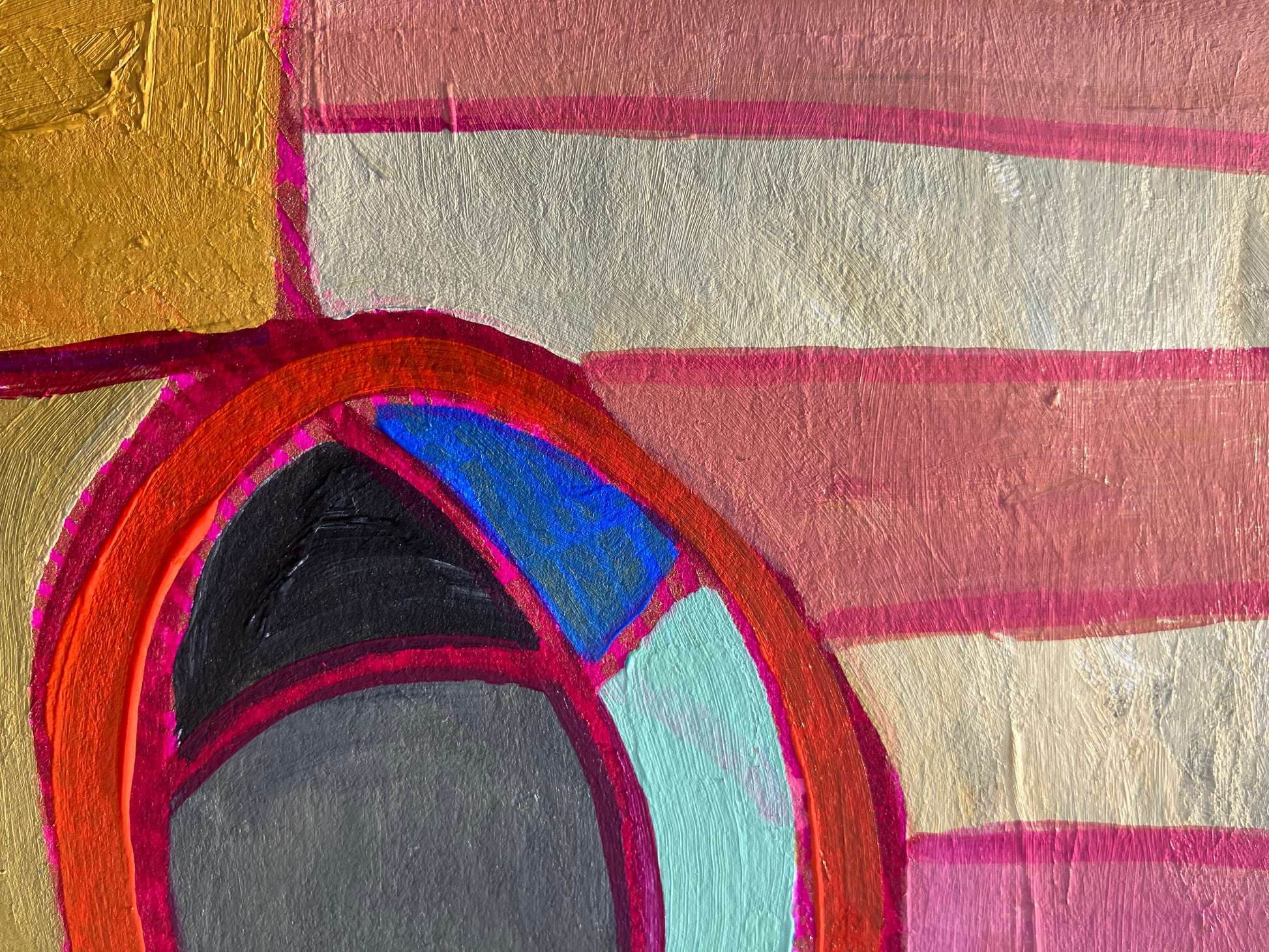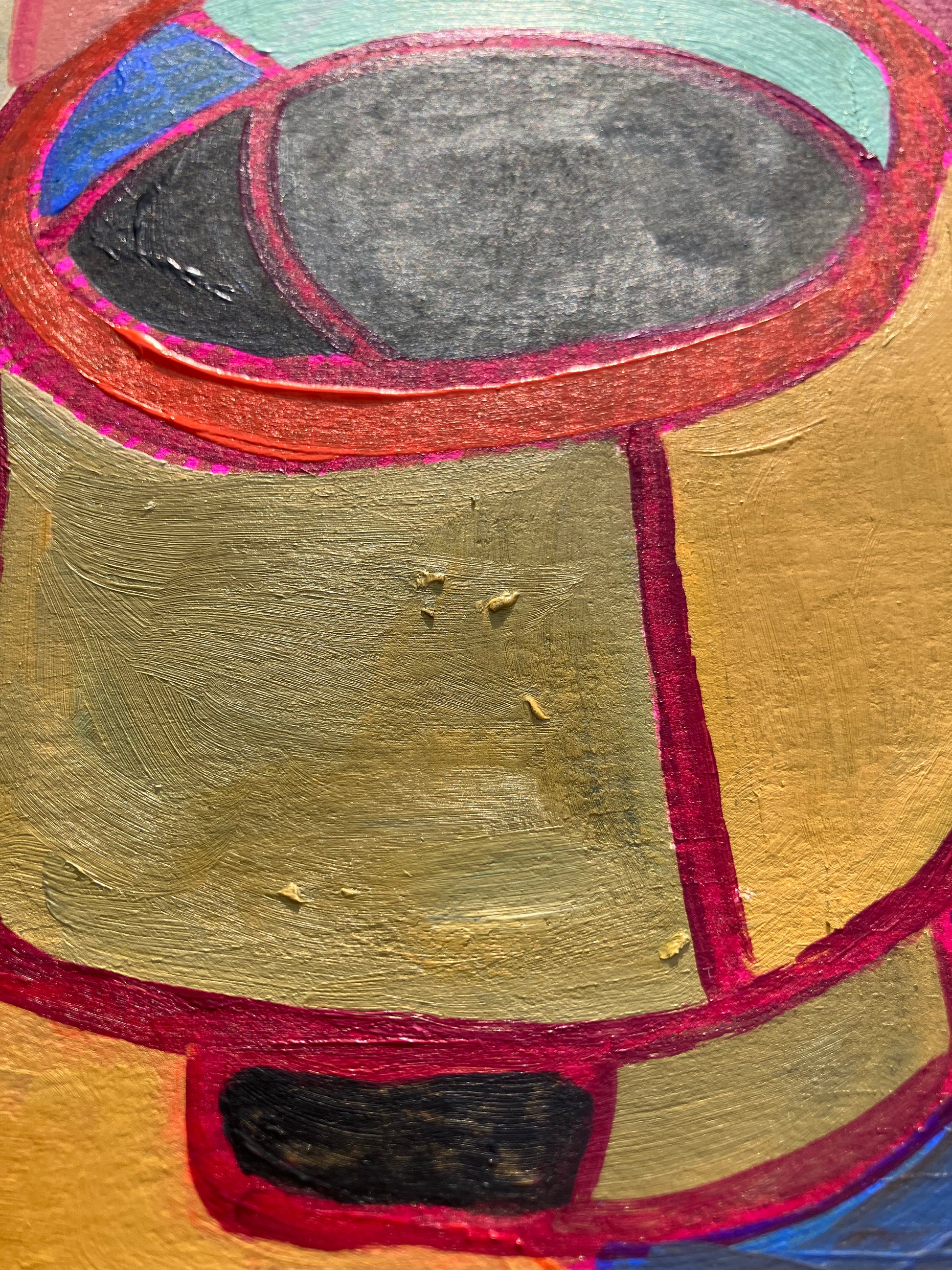 This original painting is nicely textured. The paper was recycled from a linocut print, giving it a unique texture. This piece is an original, texture abound!
