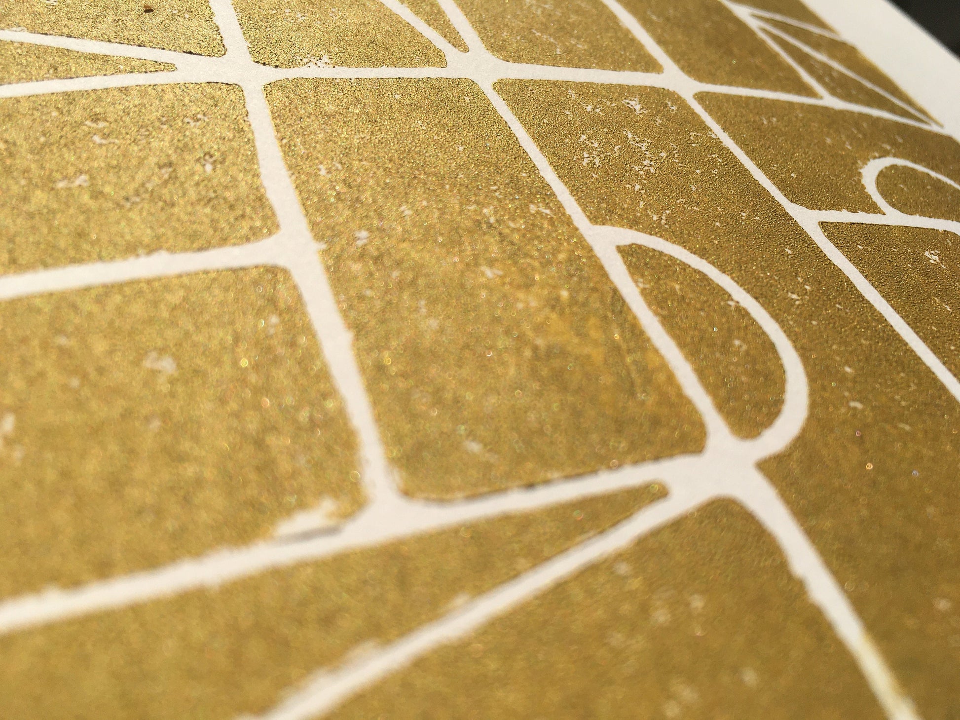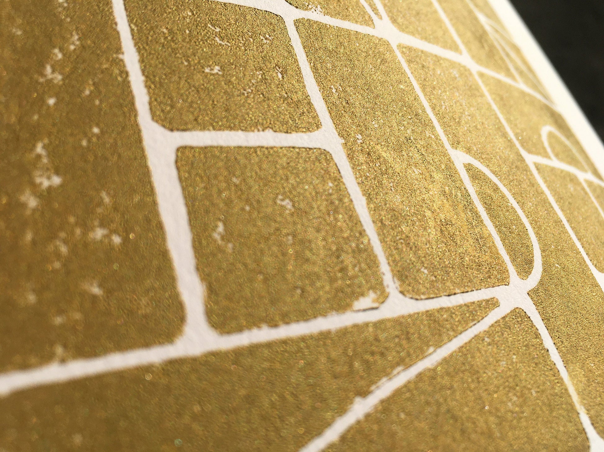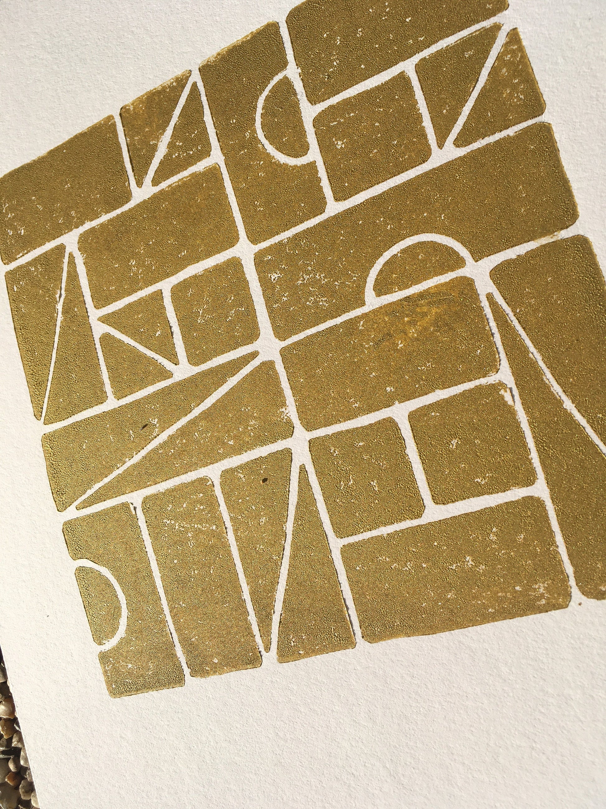 Minimal Danish block print, printed in shimmery metallic gold. This minimal, hand-pressed print was hand-pressed in gold on gorgeous cotton Lettra letterpress paper. The linoleum block is carved by hand, inked, then each print is hand-pressed individually. Due to the printing process (which is done entirely by hand), there will be variations from print to print giving you an original and unique piece of artwork! All materials are archival.