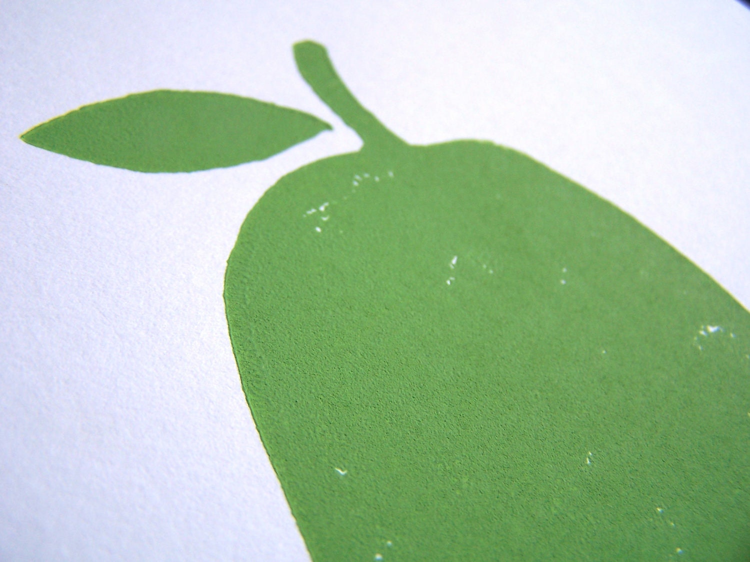 This hand-pressed linoleum cut print was pressed in green on beautiful letterpres paper. The linoleum block is cut by hand, inked, then each linoprint is pressed individually. Due to the printmaking process, there will be slight variations from print to print. This means that no two prints are the same. All materials are archival. Wide margins give you room to mat and frame to your liking. This is perfect for the kitchen. This is the perfect print for the modern kitchen. It looks fabulous on a minimal gallery wall.