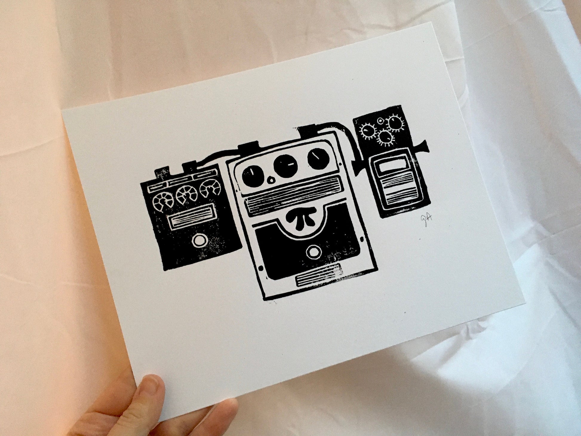 This is a great print for musicians. This original, hand-pulled print was pressed in black on thick cotton letterpress paper. The linoleum block is cut by hand, inked, then printed individually. Due to the printing process (which is done entirely by hand), there will be variations from print to print giving you an original and unique piece of artwork! All materials are archival.
