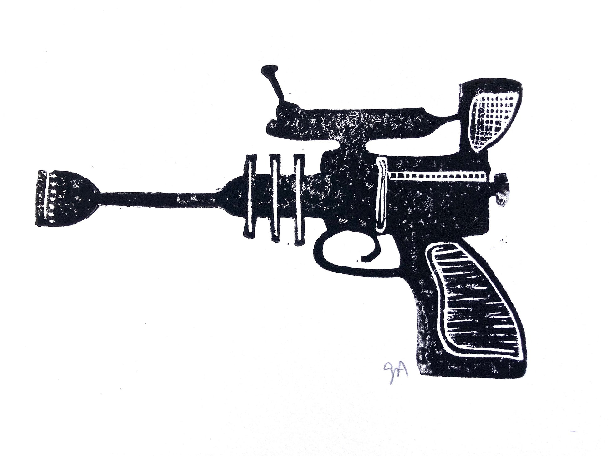 LINOCUT - Minimal Ray Gun - Hand-pressed linoleum block print (8x10in)