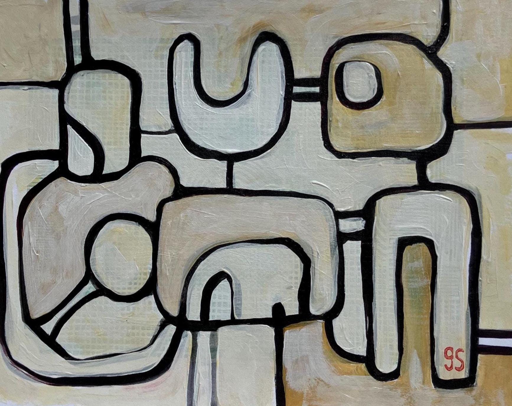 Neutral mid century painting #1 - Original acrylic painting (8x10in)