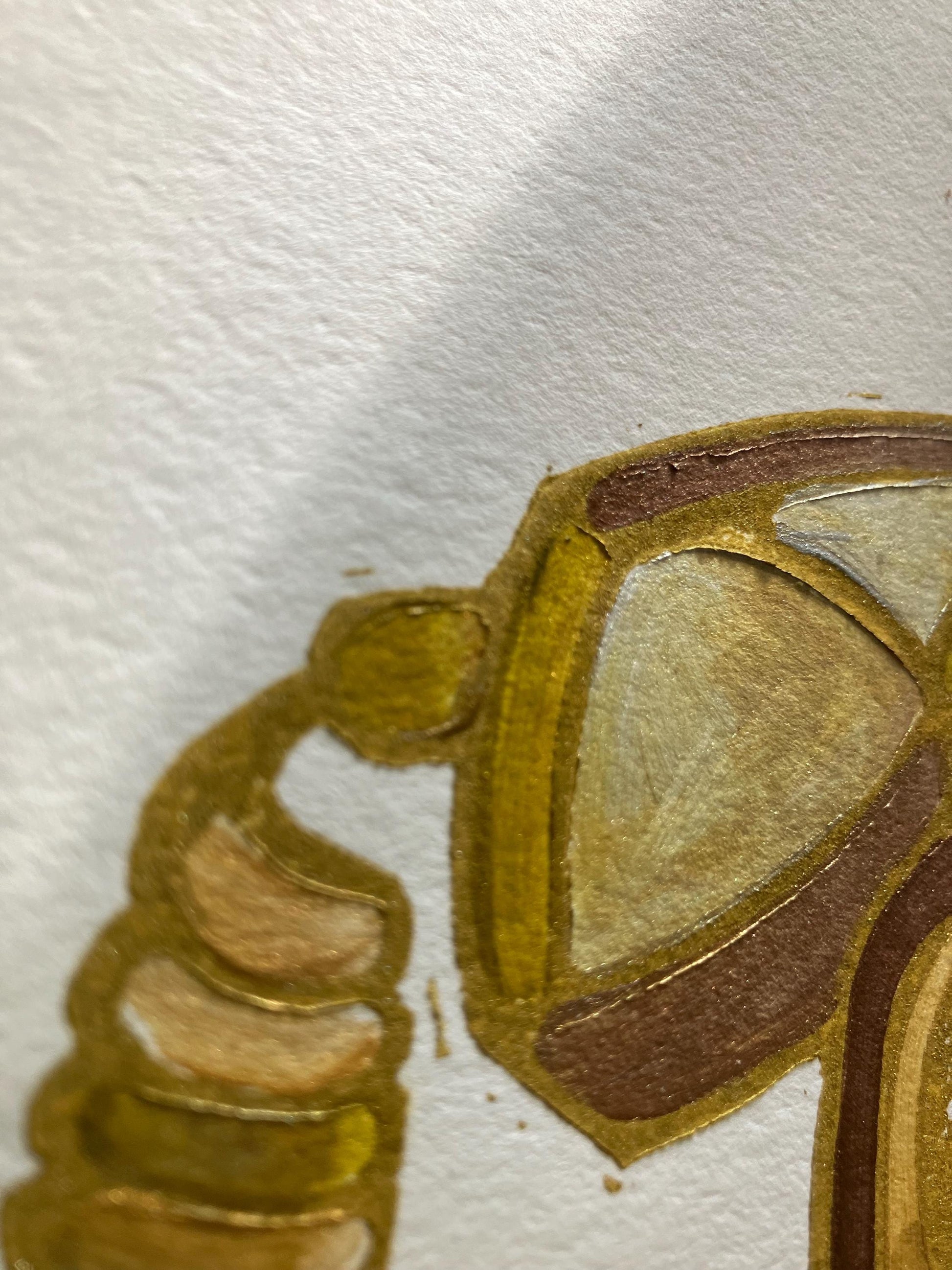 This is an original 8x10" acrylic painting on thick cotton paper. First, the outline was pressed in shimmery gold from a hand-carved linocut block. Finishing touches were hand-painted with acrylics.