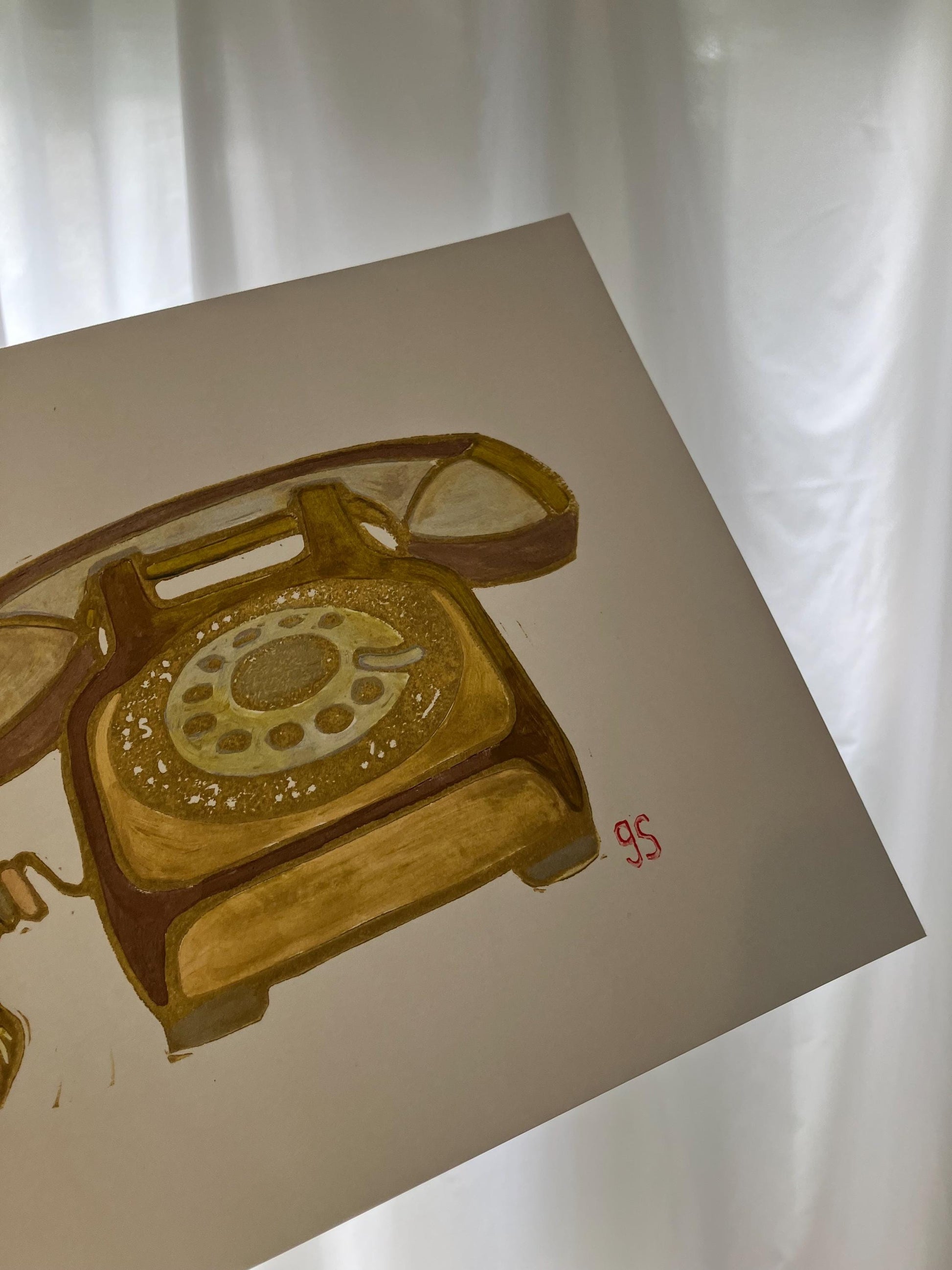 Vintage rotary telephone art - Original acrylic painting (8x10in)