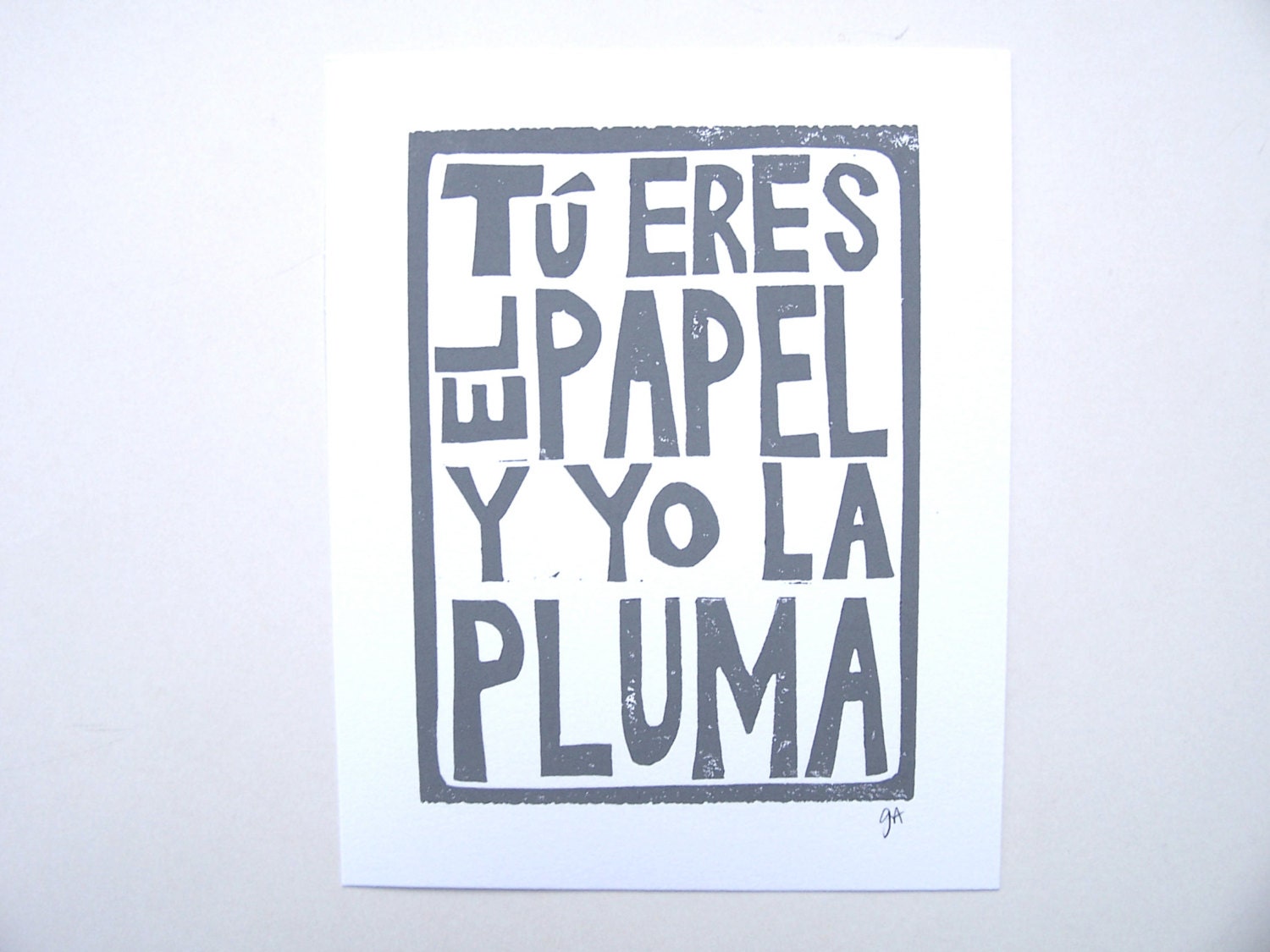 LINOCUT - Tu eres el papel y yo la pluma - Hand-pressed linoleum block print (8x10in) - Pablo Neruda