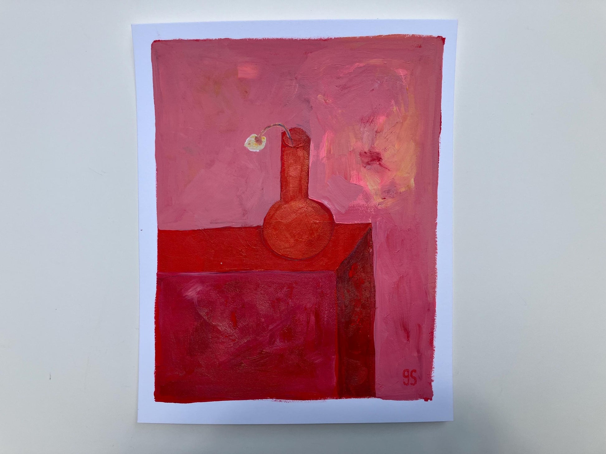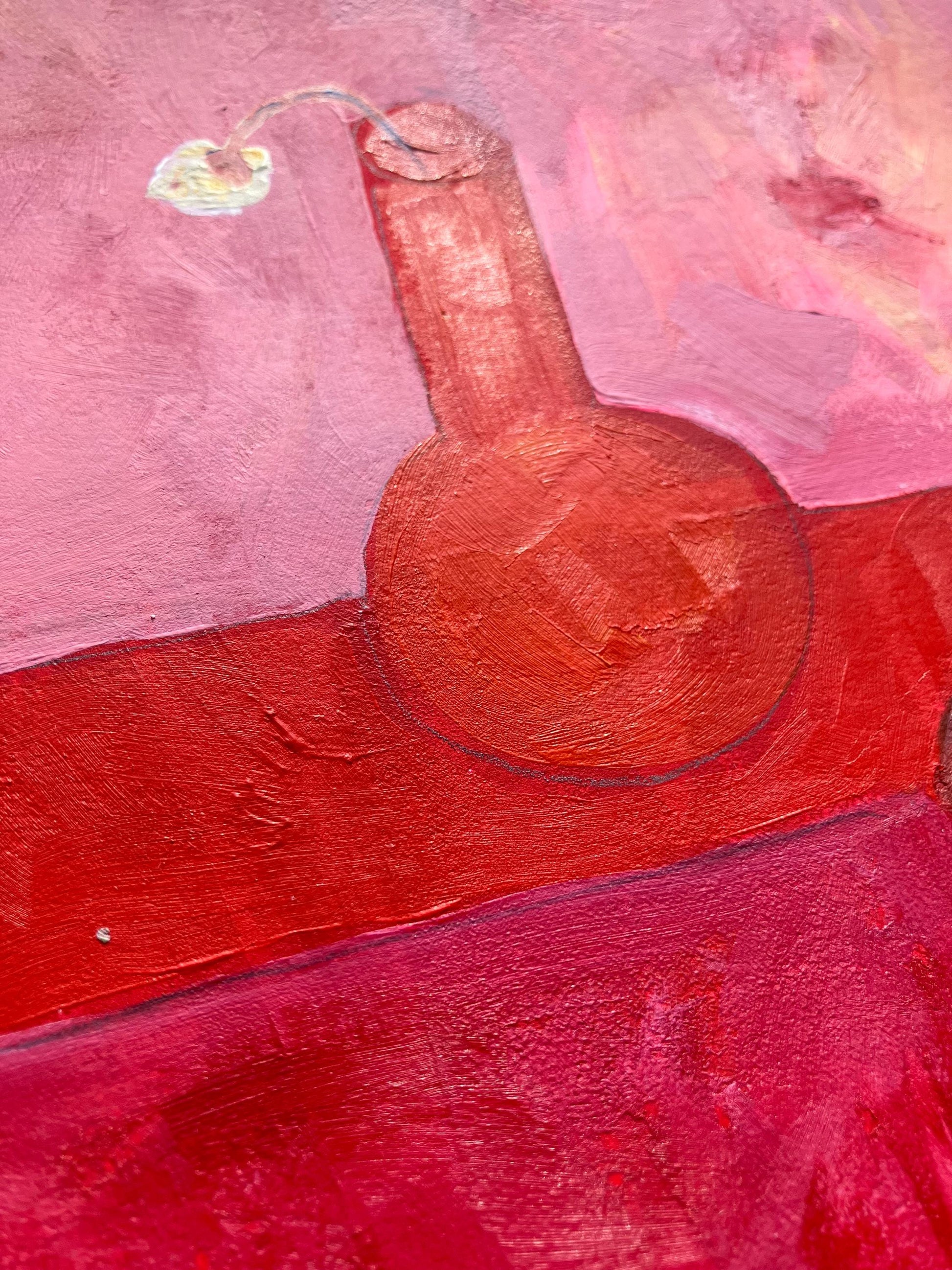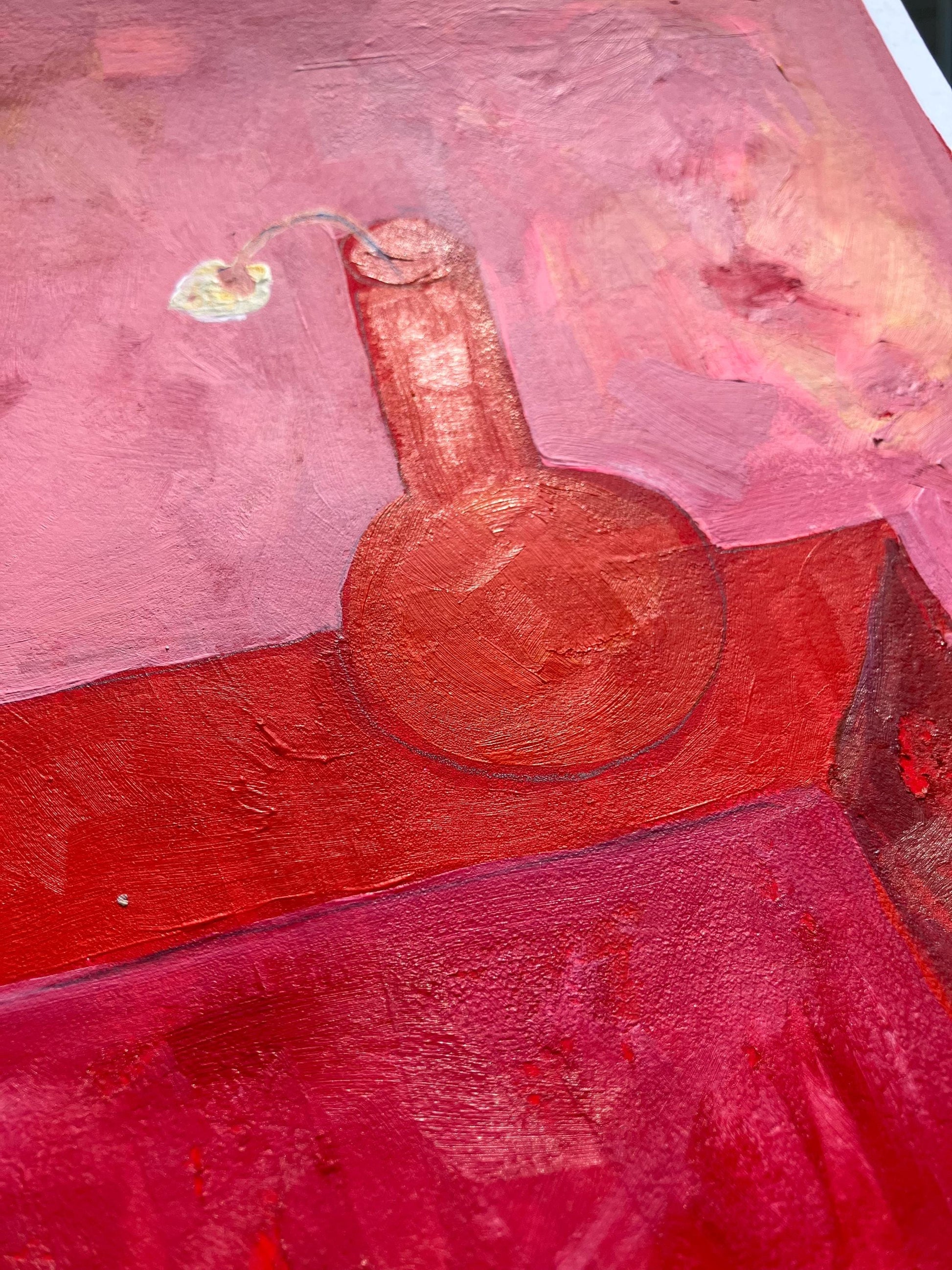 Pink and red still life of a sad little flower - Original acrylic abstract painting (8x10in)