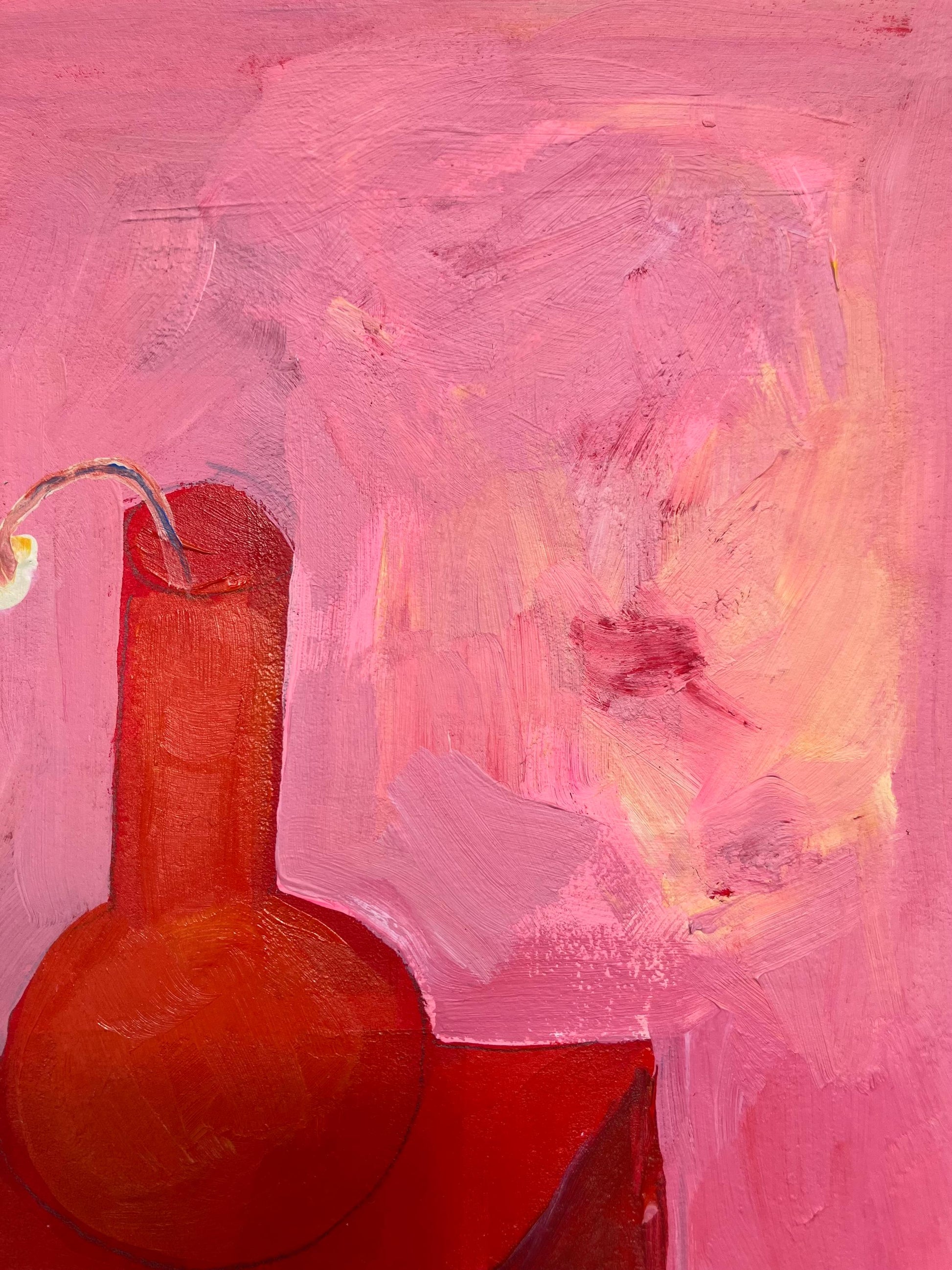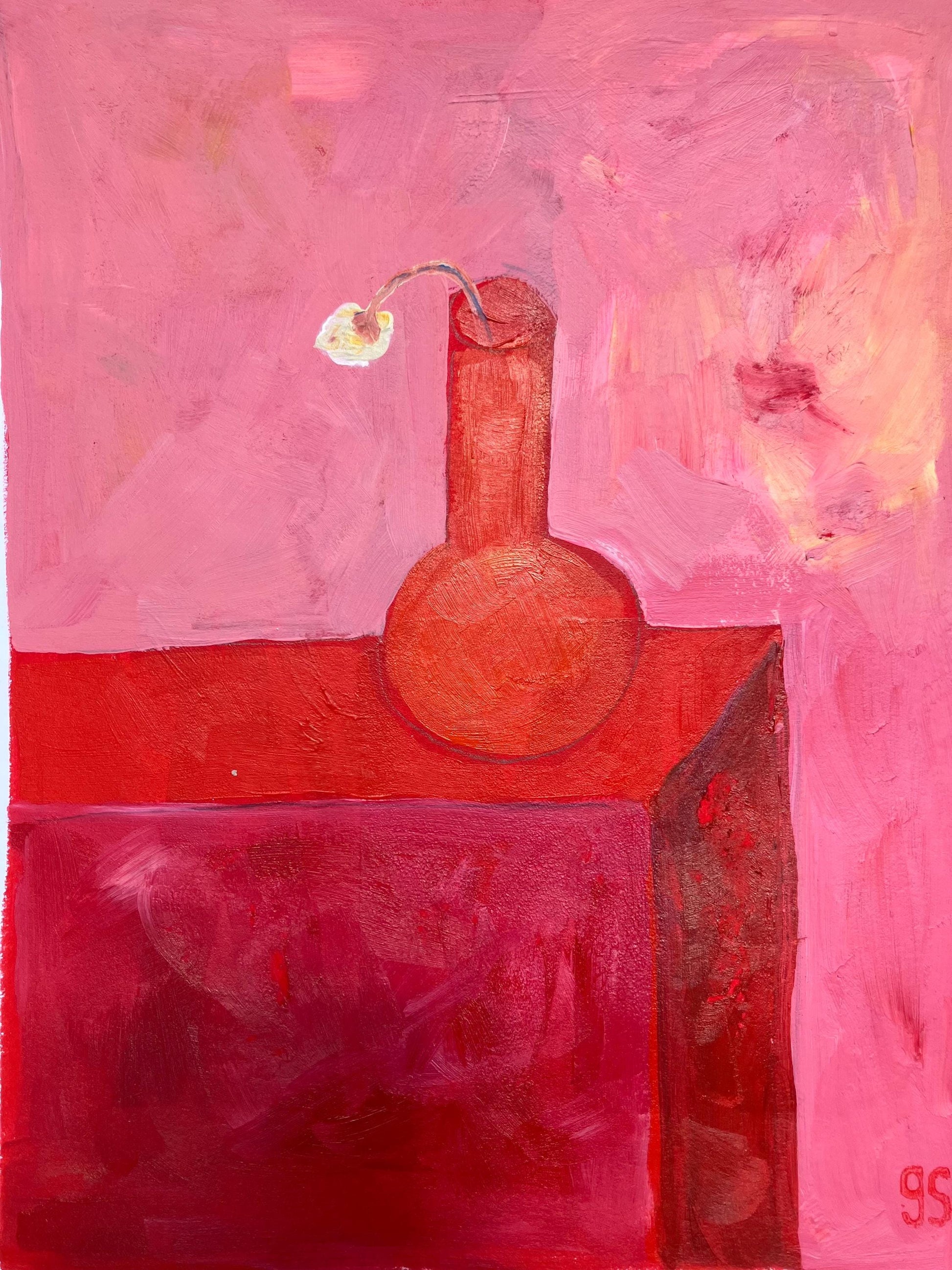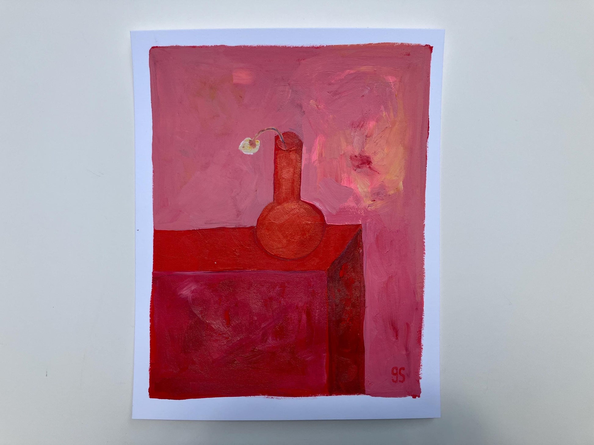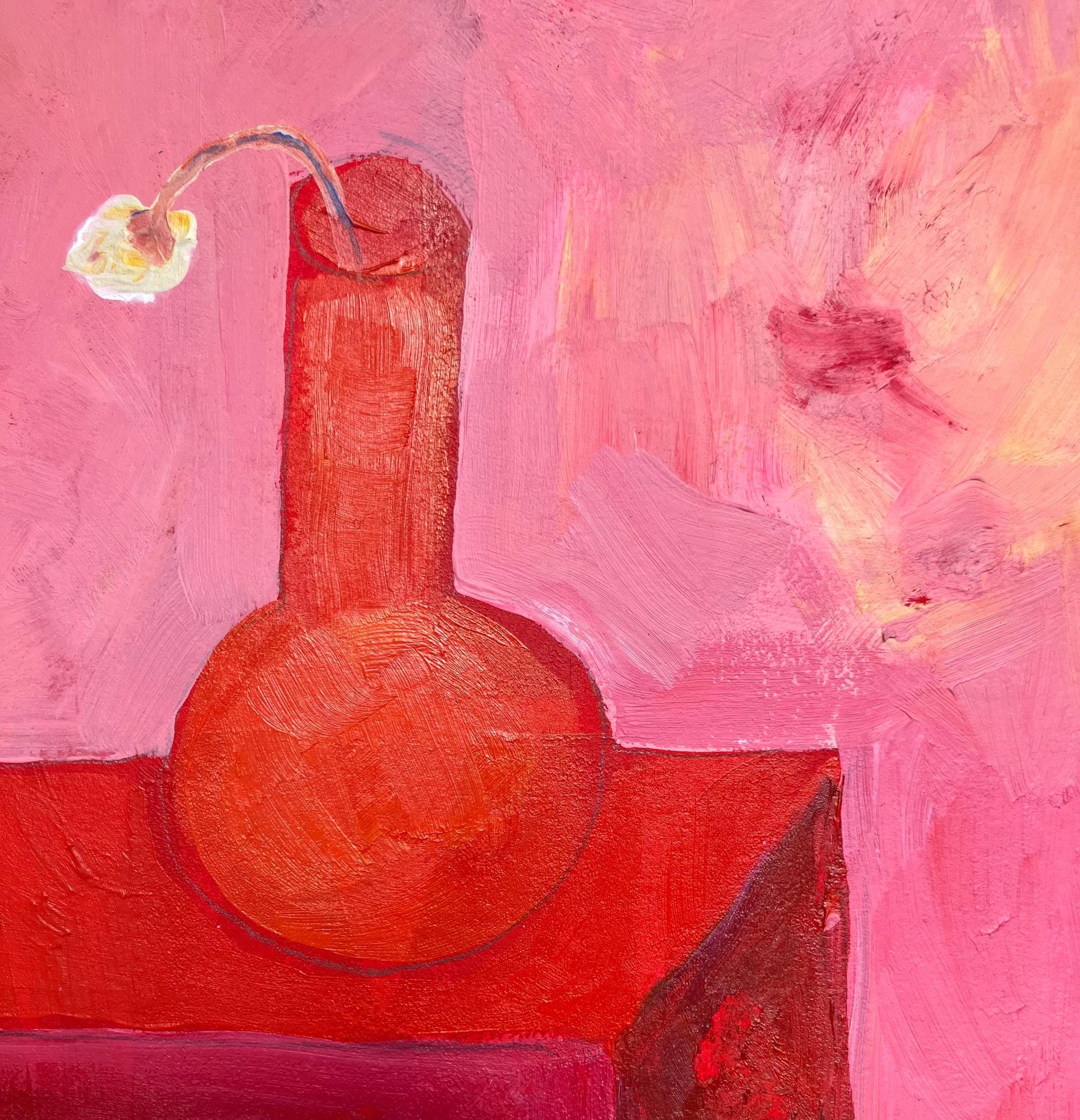 Pink and red still life of a sad little flower - Original acrylic abstract painting (8x10in)