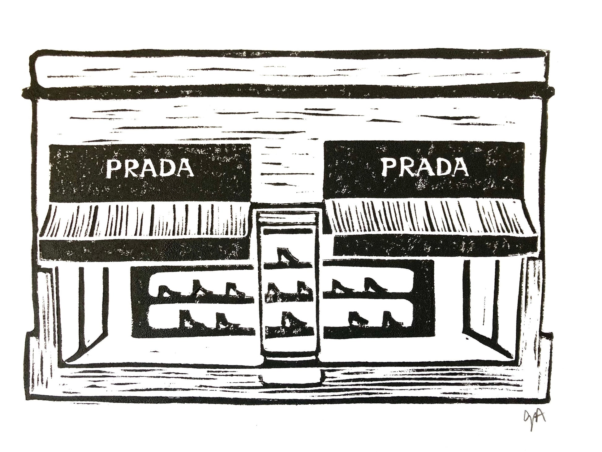 Prada Marfa is an art installation in the middle of the desert in Texas. This linocut print of Marfa's infamous Prada store was pressed in sizzling hot pink on gorgeous cotton Lettra letterpress paper. The linoleum block is cut by hand, inked, then printed individually. Due to the printing process (which is done entirely by hand), there will be variations from print to print giving you an original and unique piece of artwork! All materials are archival.