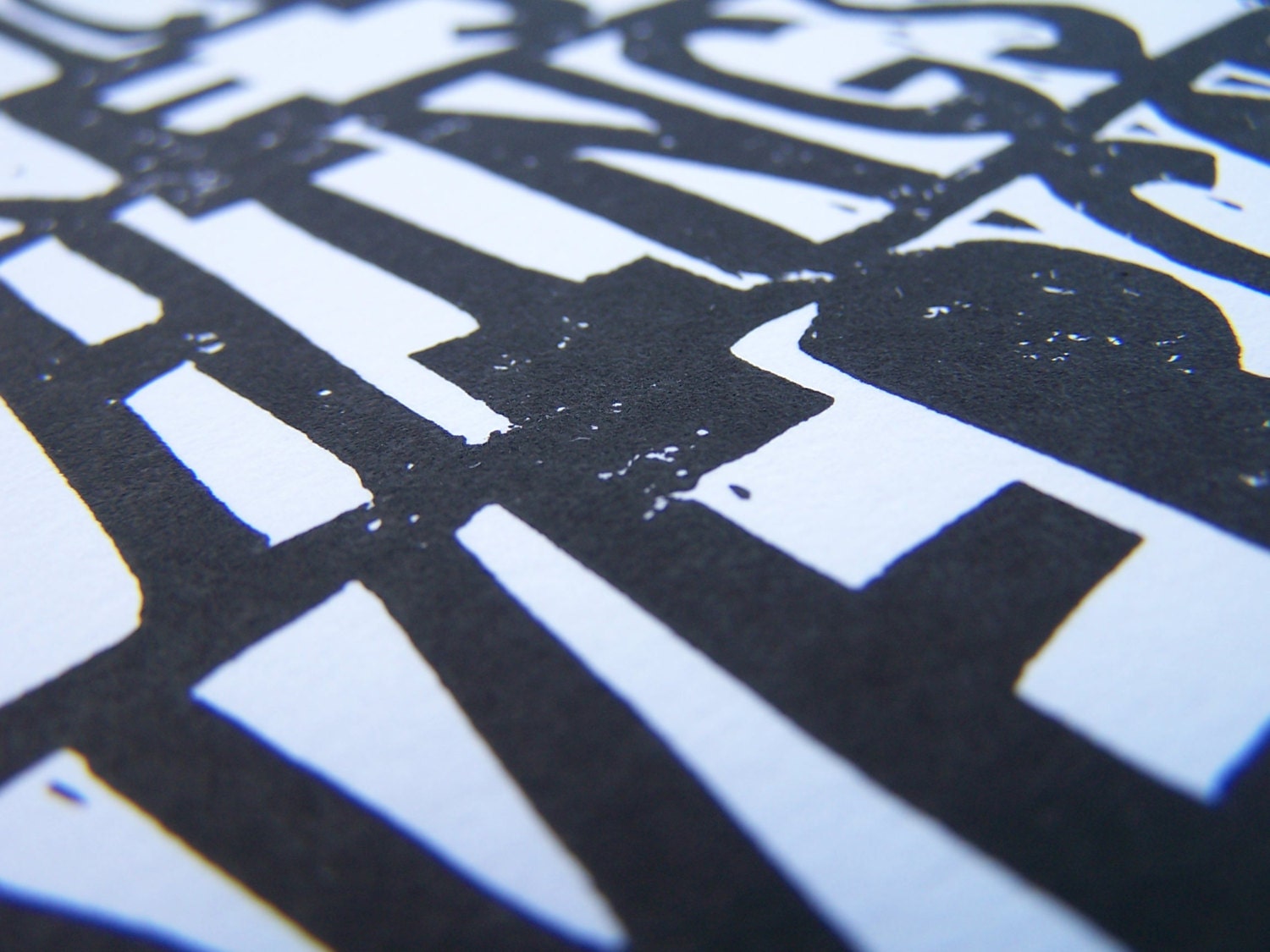 This original, hand-pulled linocut print was pressed in black on beautiful letterpress paper. The linoleum block is carved by hand, inked, then each linoprint is pressed individually. The process literally hasn't changed at all since Shackleton's expedition! Due to the printmaking process (which is done entirely by hand), there will be variations in ink coverage. All materials are archival.