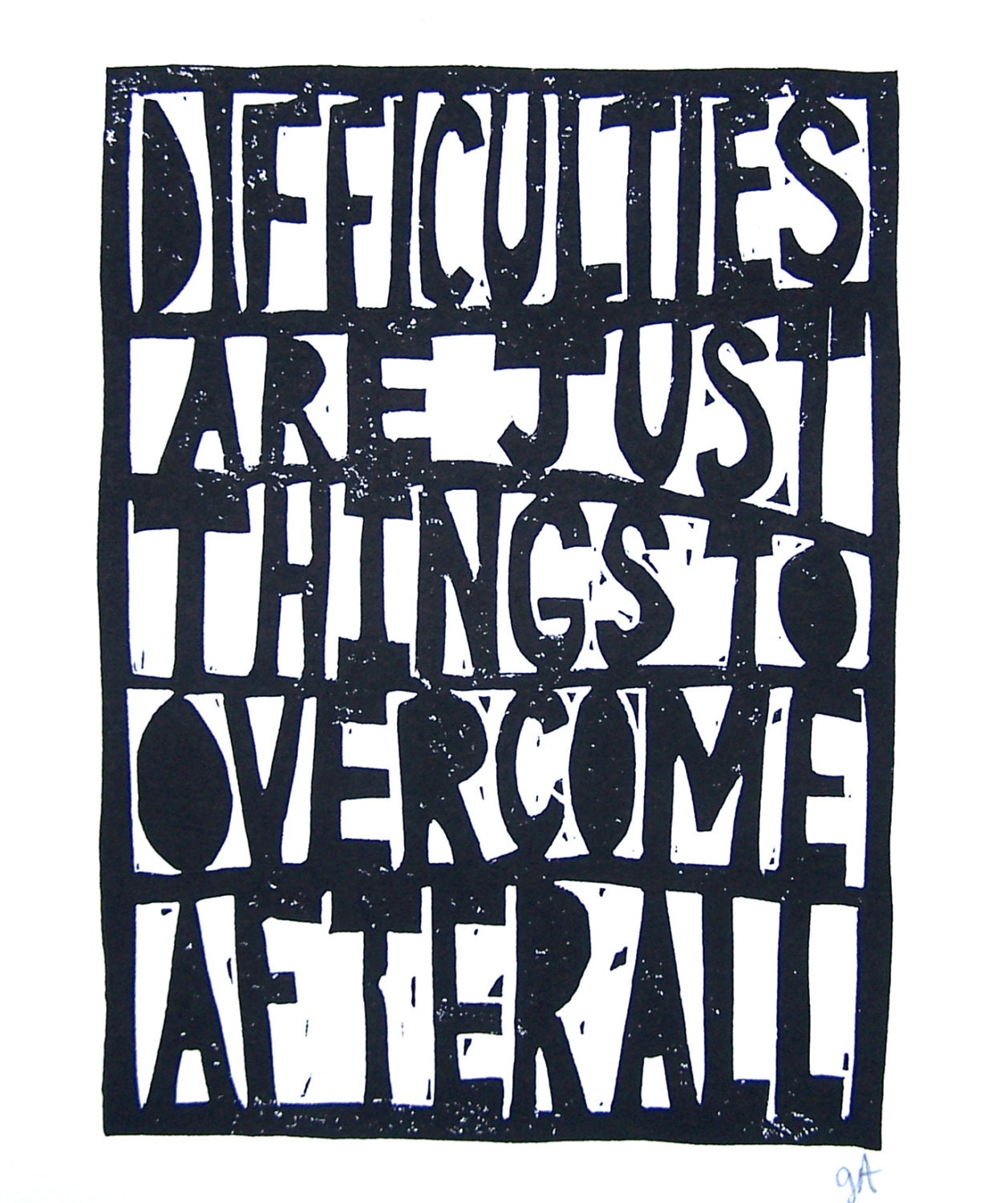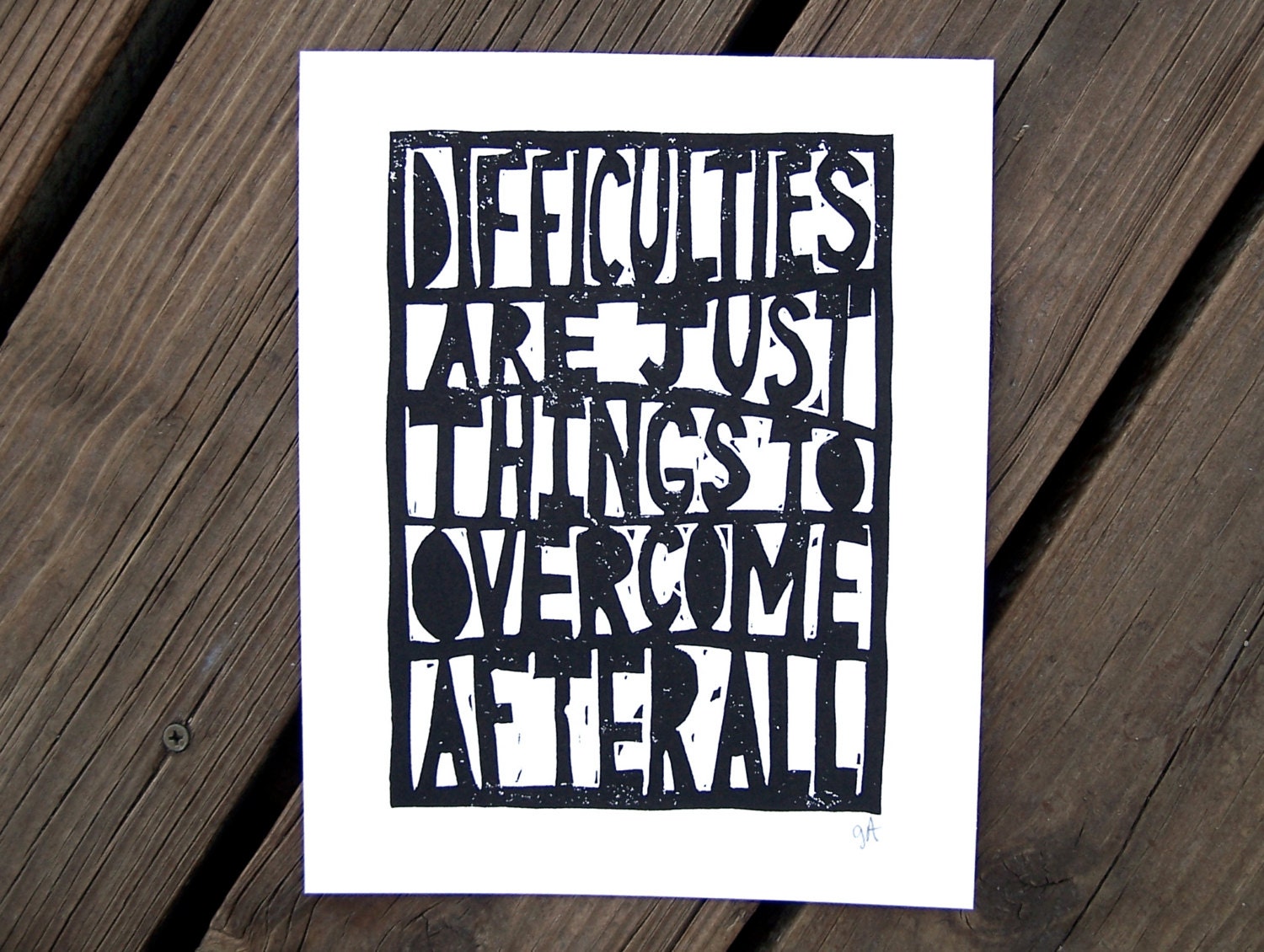 Difficulties are just things to overcome - Linocut print (8x10in)