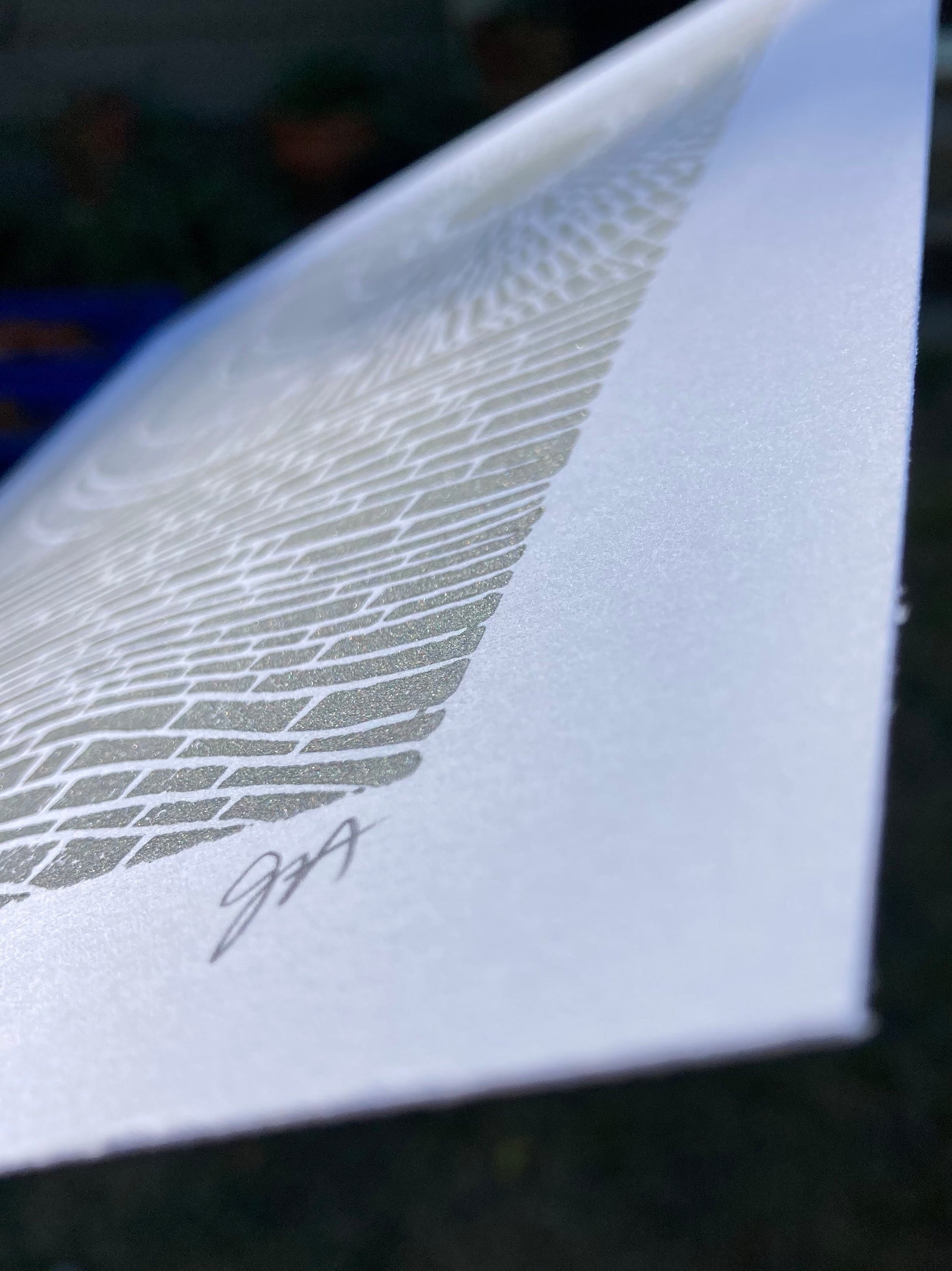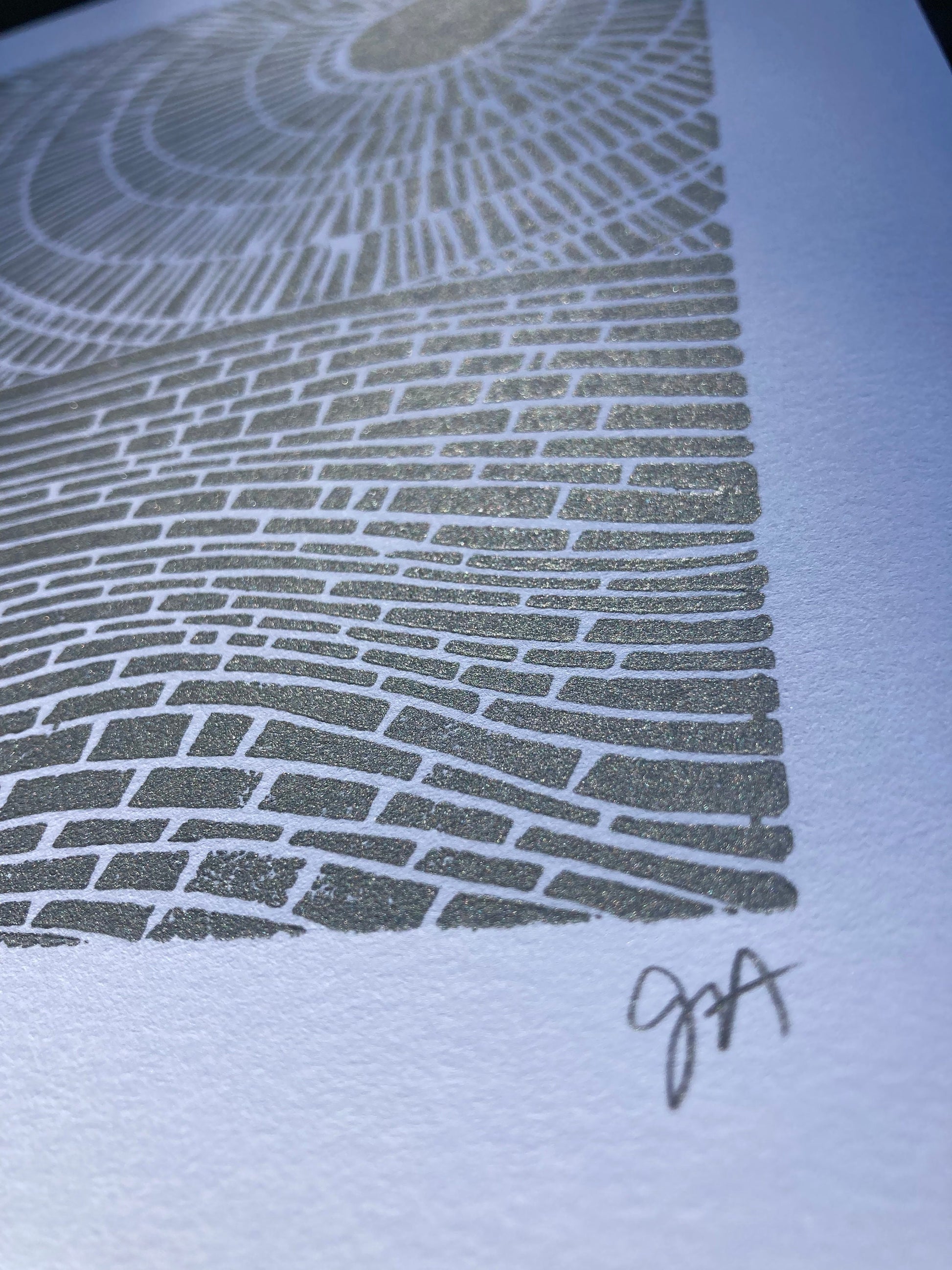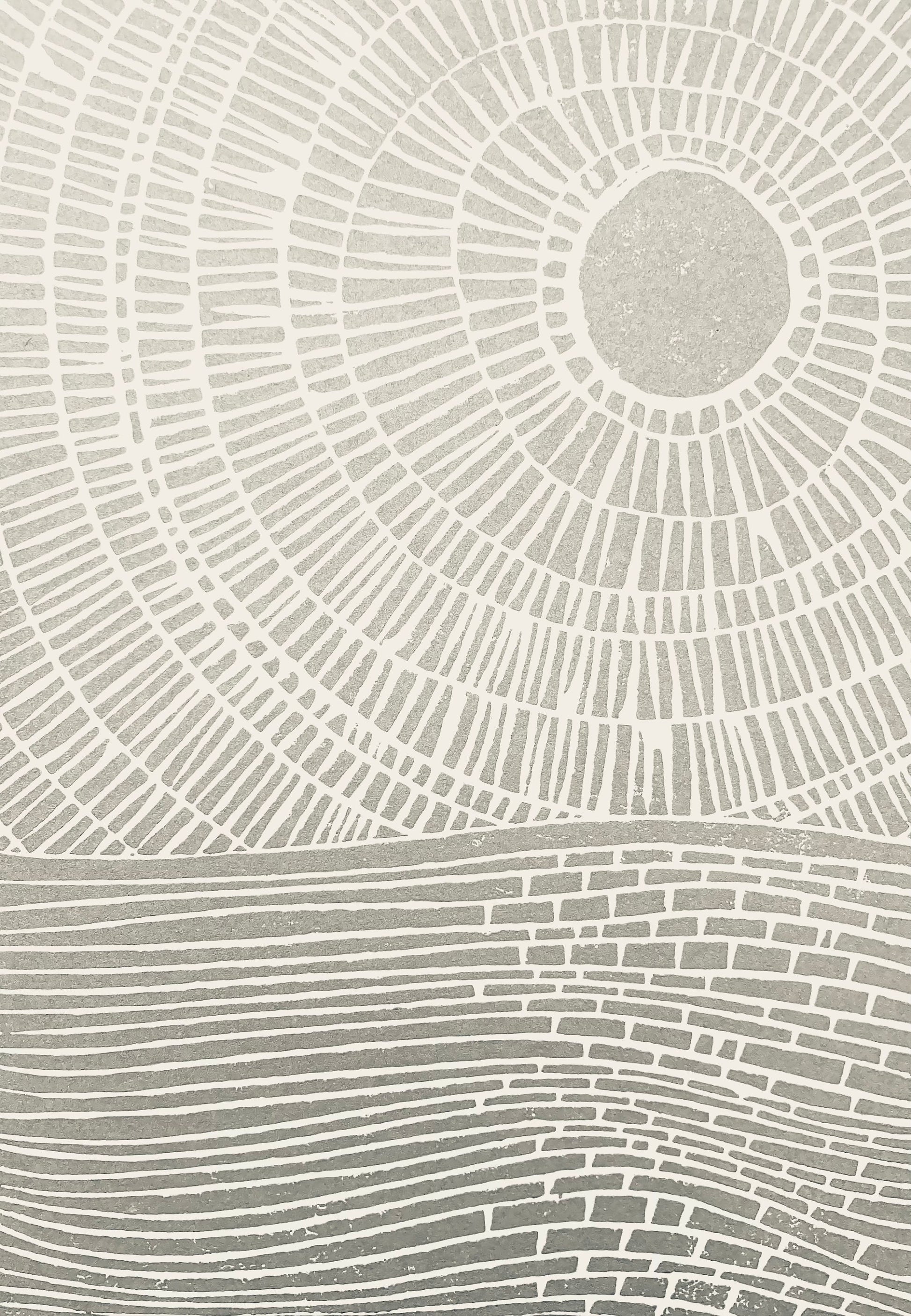 This original, hand-pulled linoleum block print of the ocean was pressed in shimmery silver on thick cotton letterpress paper. The linoleum block is cut by hand, inked, then each linoprint is pressed individually. Due to the printing process (which is done entirely by hand), there will be variations from print to print. All materials are archival.