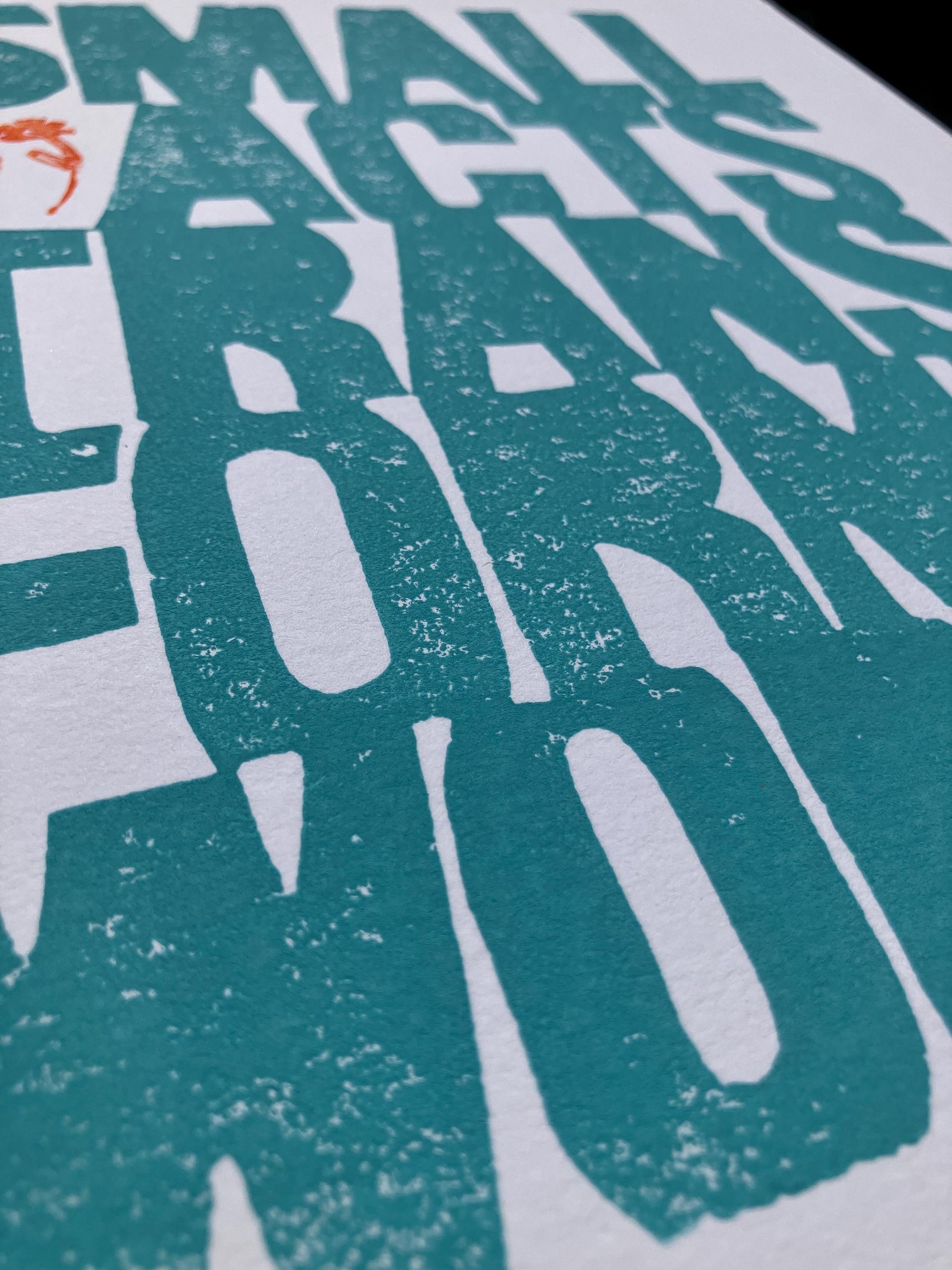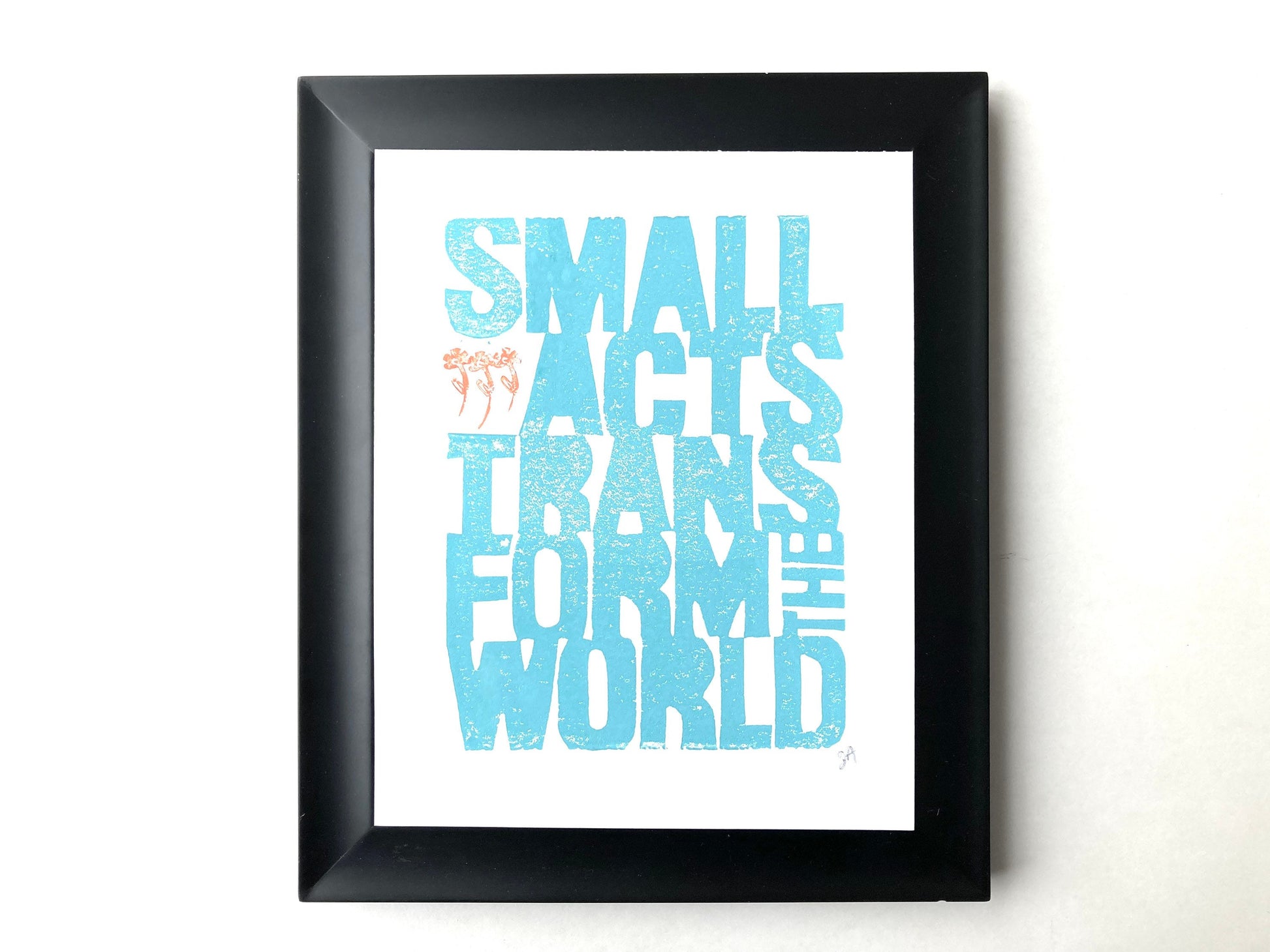 LINOCUT - Small Acts Transform the World - Hand-pressed linoleum block print (8x10in)