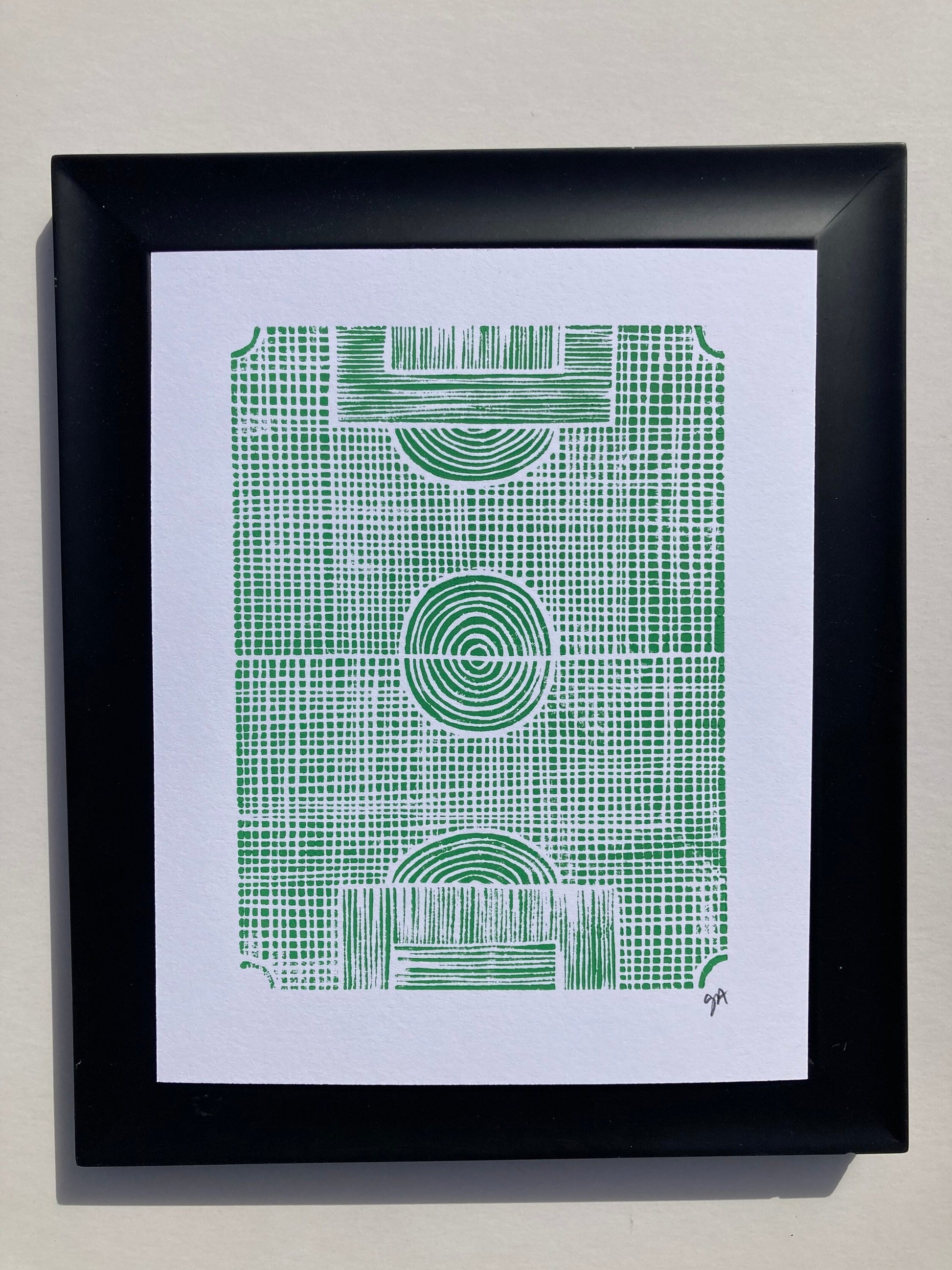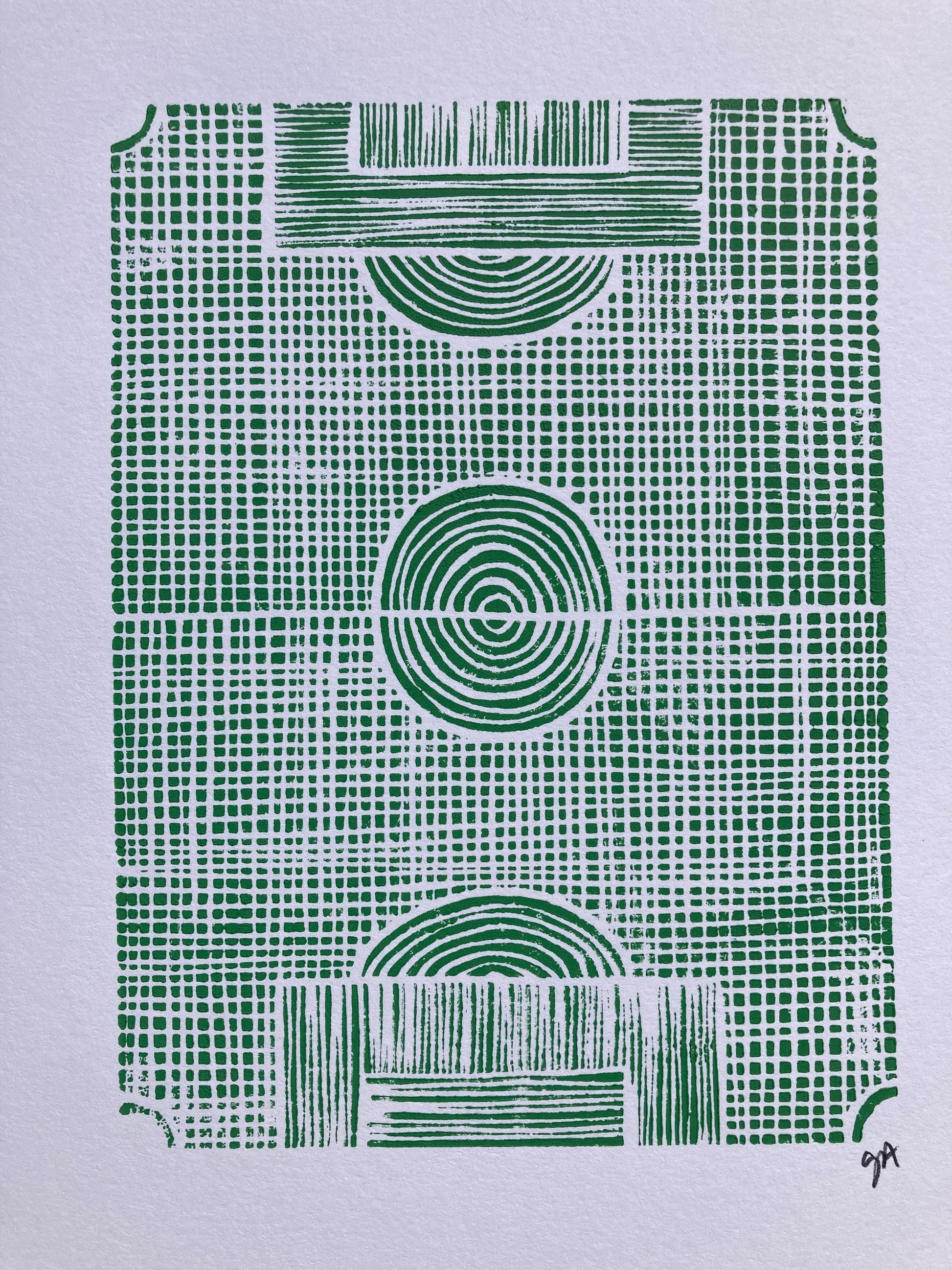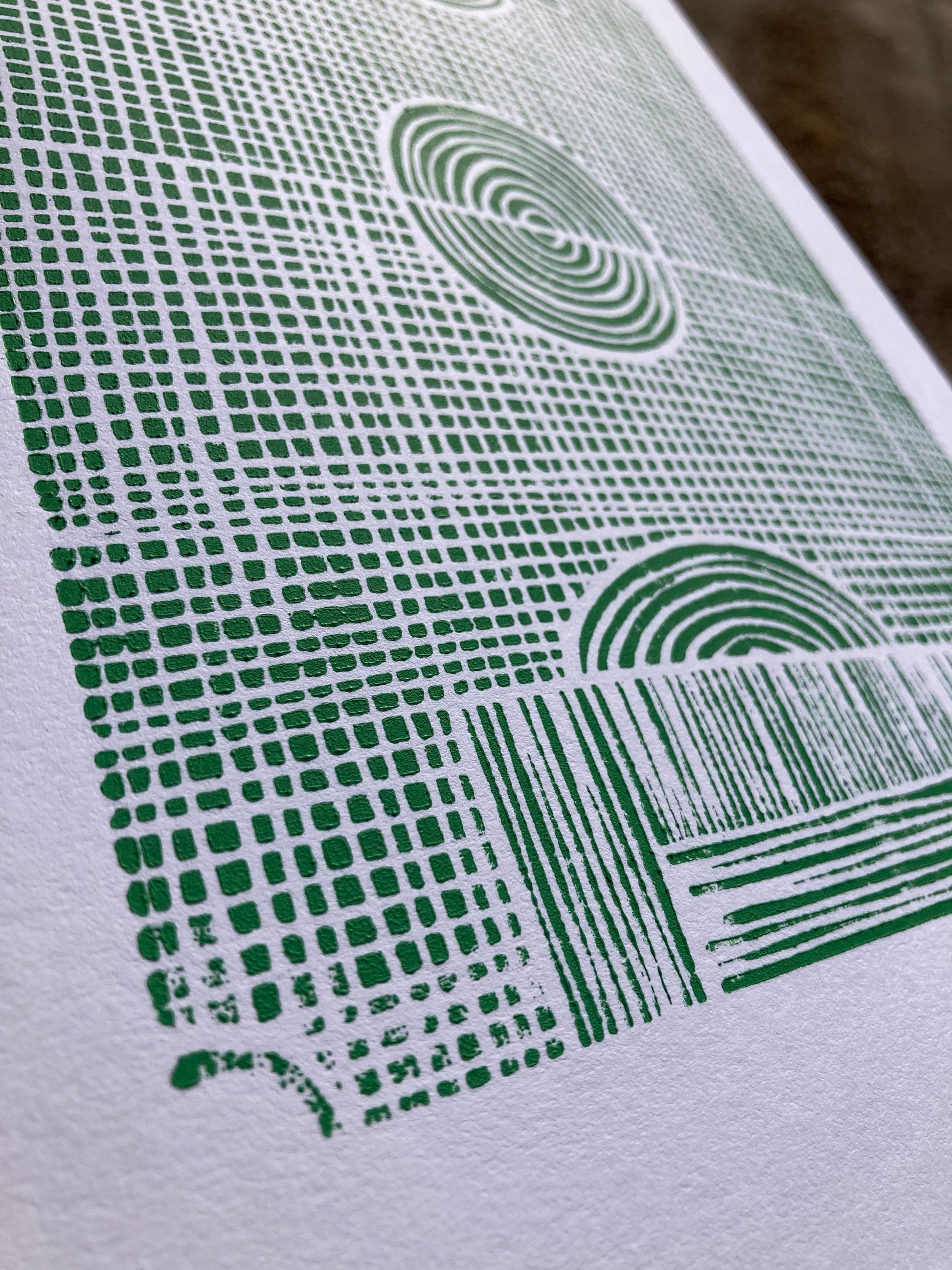 Minimal green soccer field linocut print 8x10.