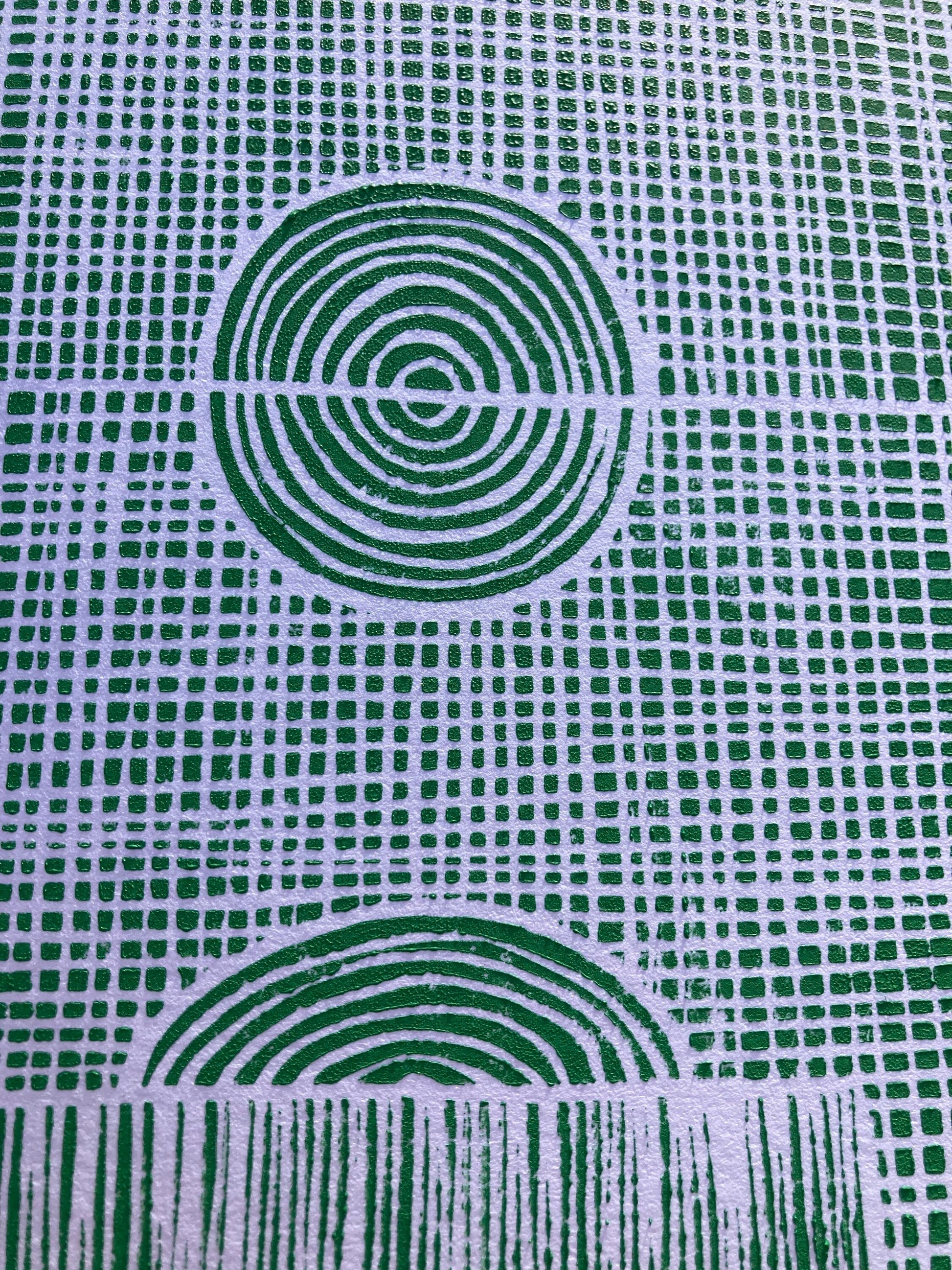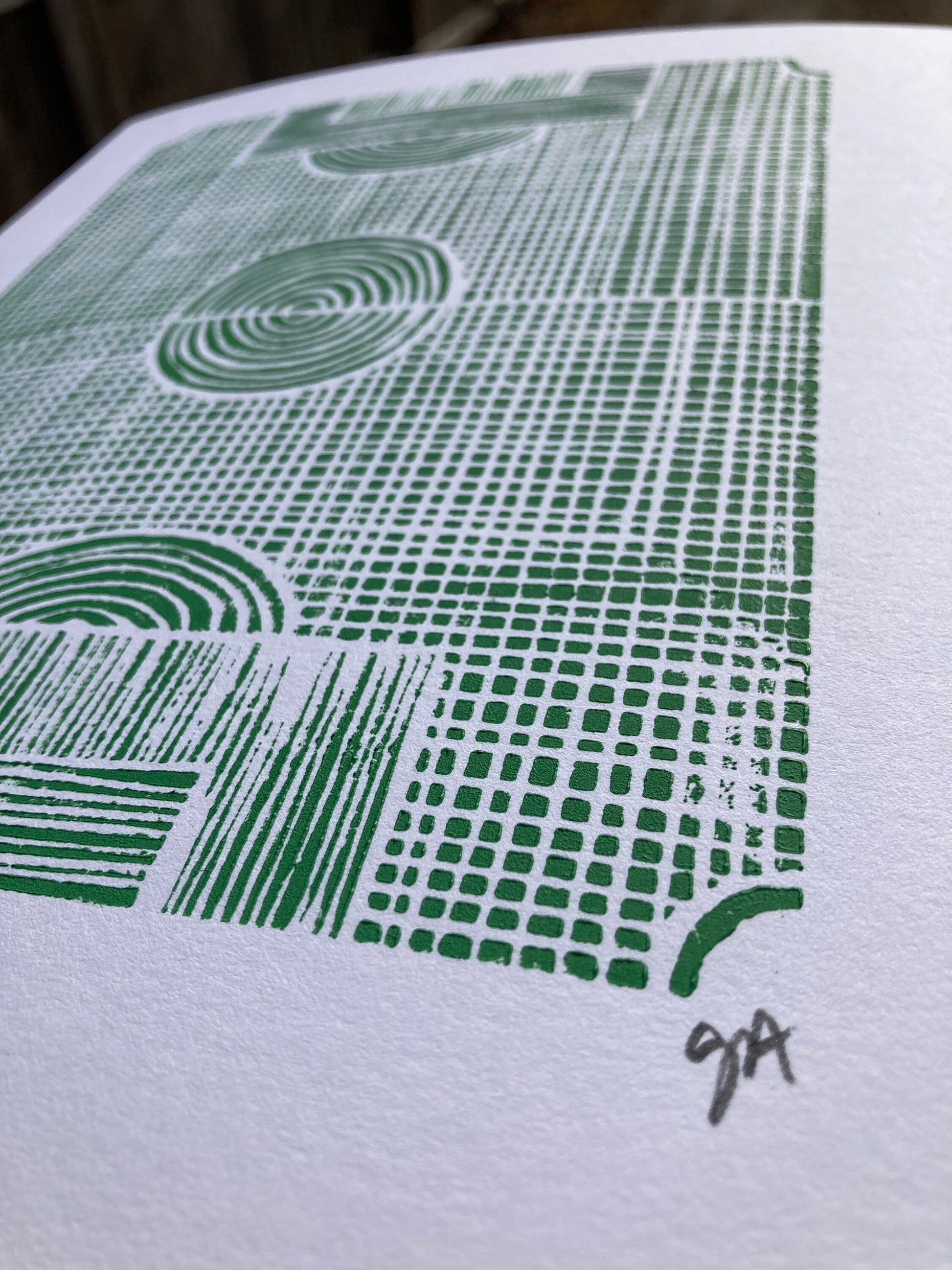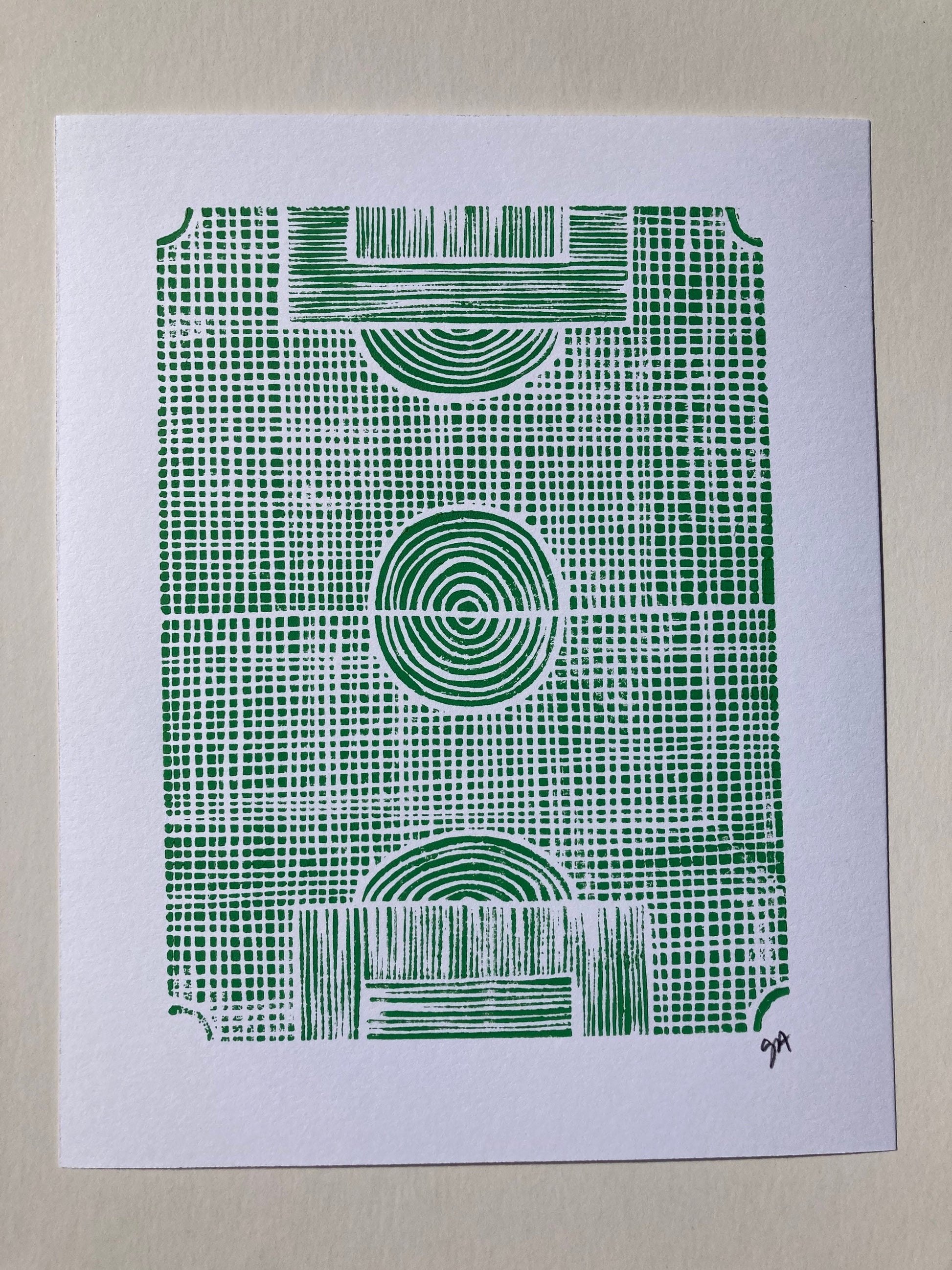Minimal green soccer field linocut print 8x10.