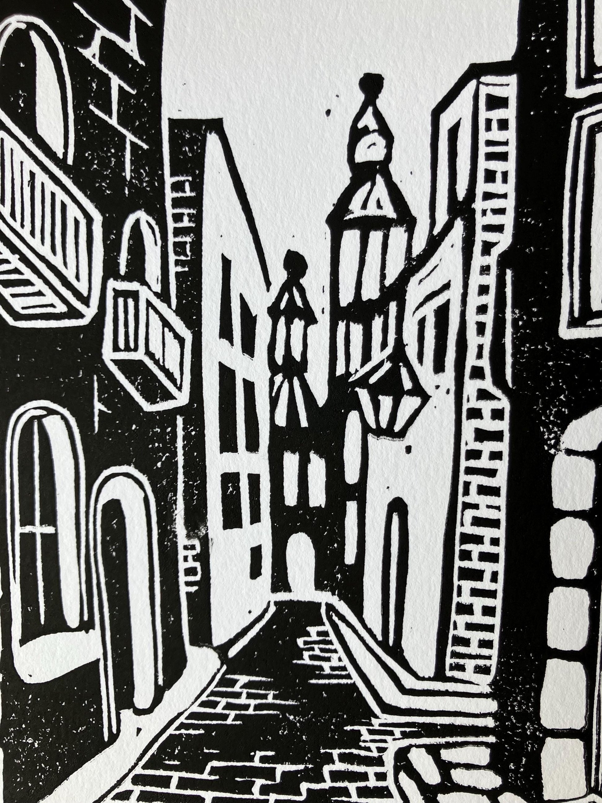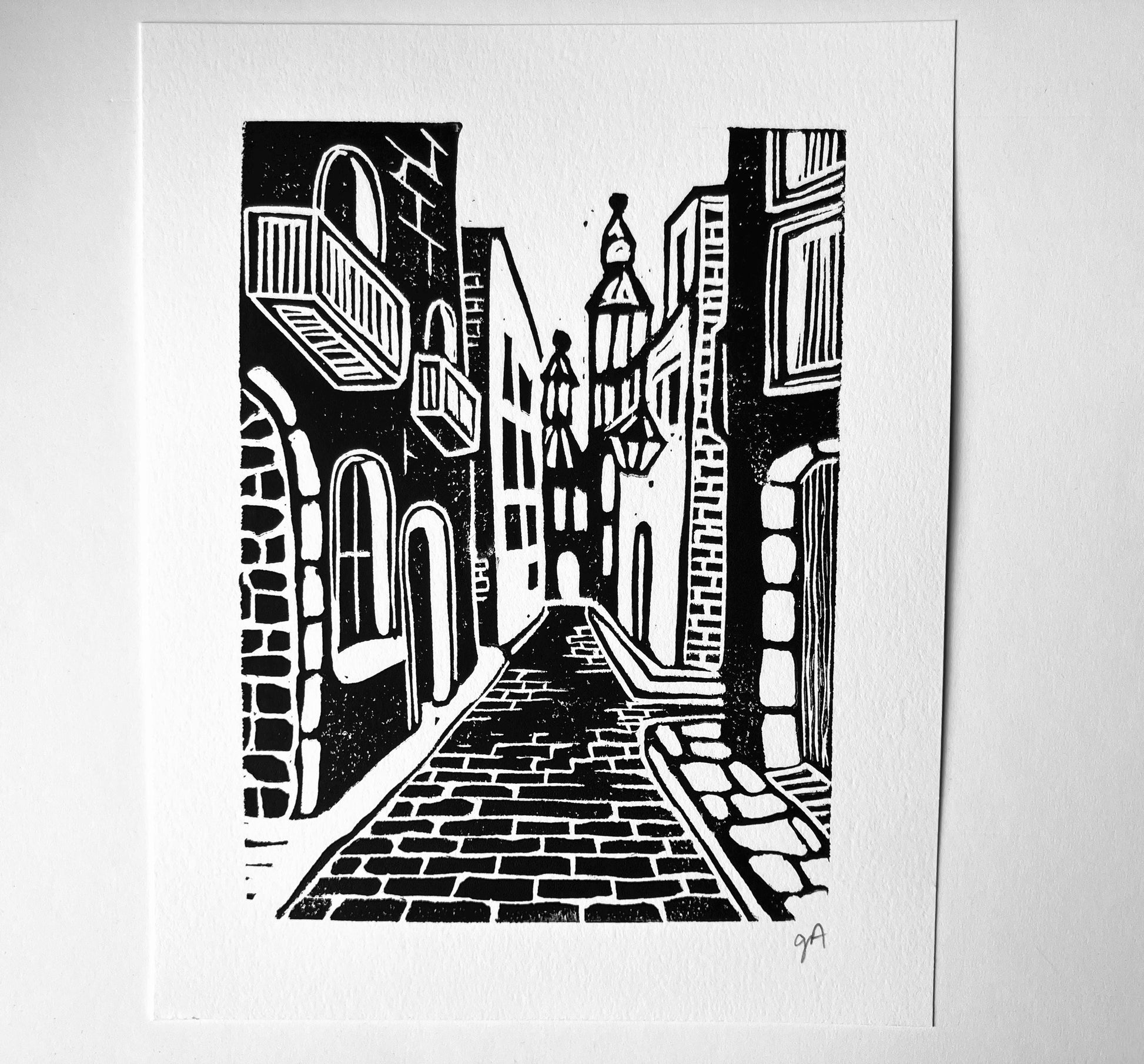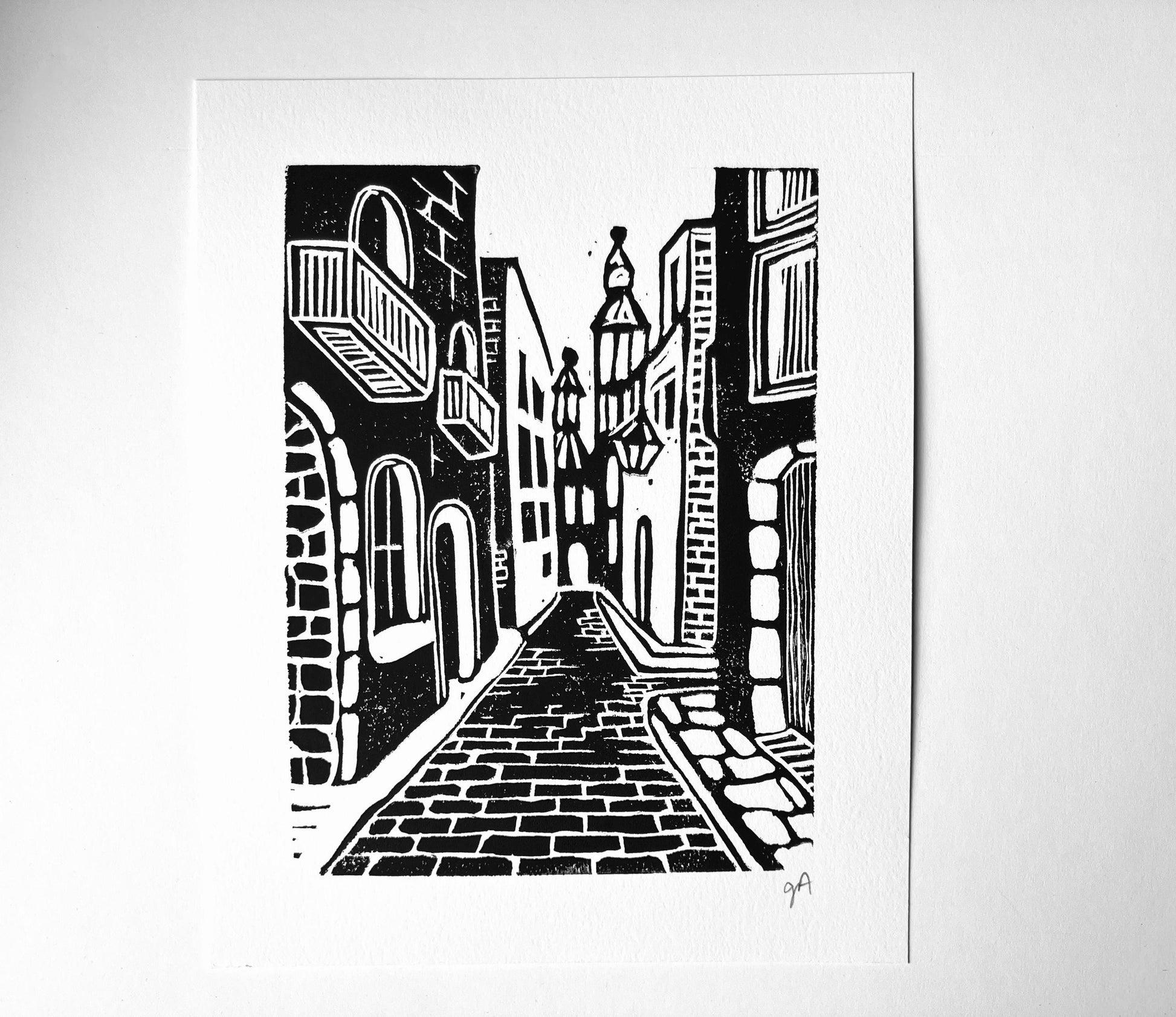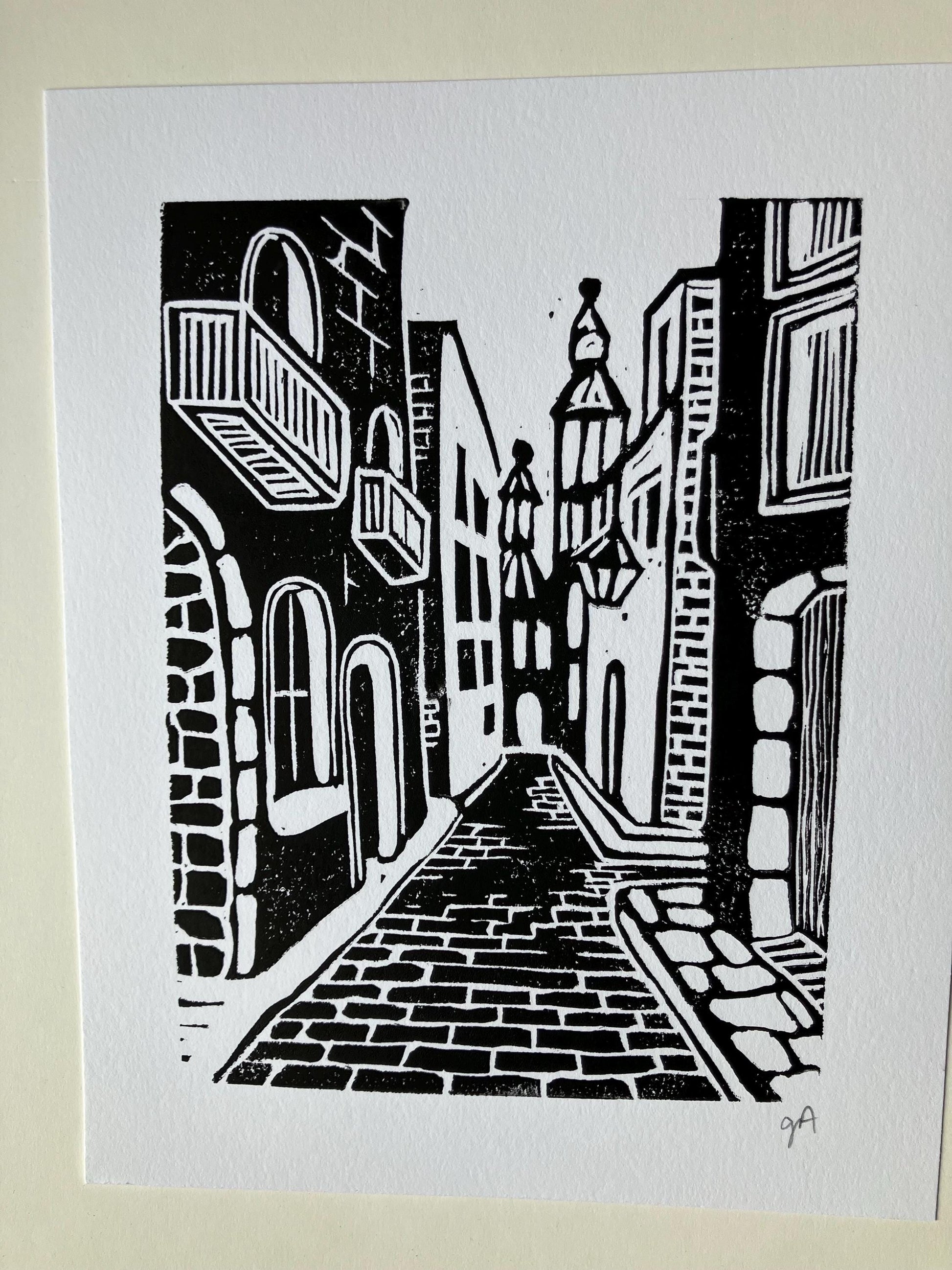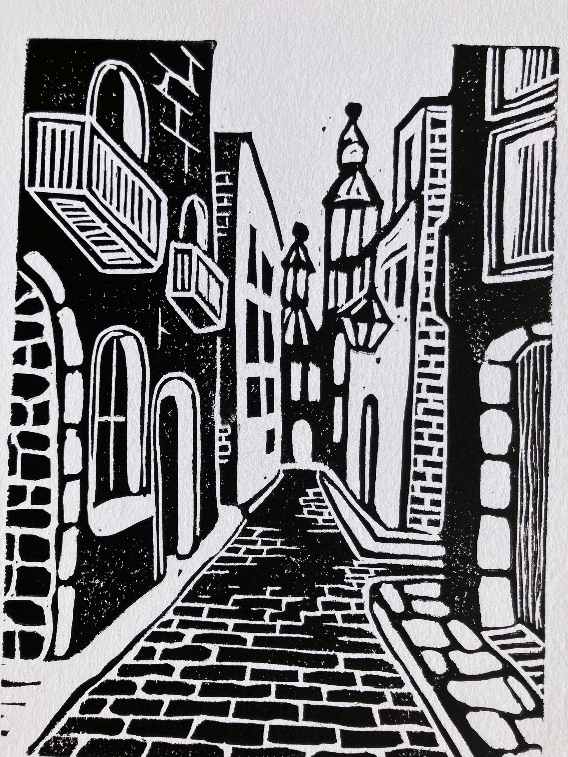 This hand-pulled linoleum block print was hand-pressed in black on thick Lettra paper. The block is carved by hand, inked, then printed individually. Due to the printing process (which is done entirely by hand), there will be variations from print to print giving you an original and unique piece of artwork! All materials are archival.
